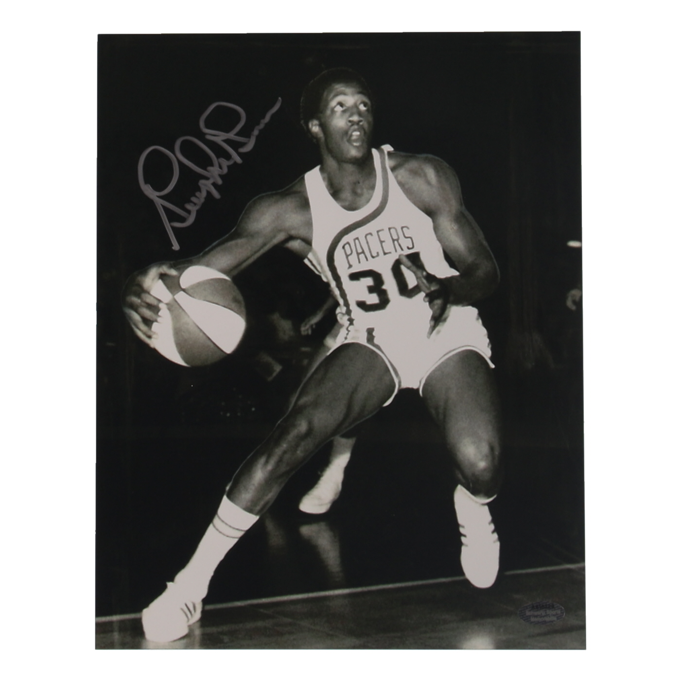 Photo measures 8" x 10" in size. Hand-signed by George McGinnis (D. 2023, Indiana Pacers, HOF).