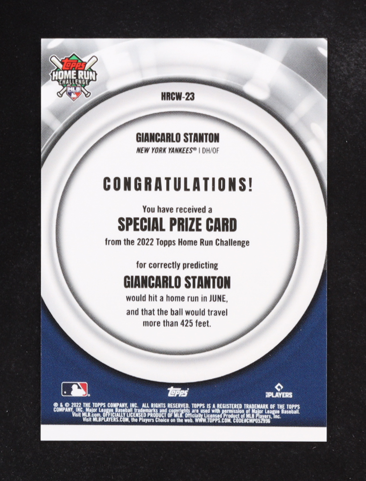 Giancarlo Stanton 2022 Topps Home Run Challenge Code Cards Winner #HRCW23 #34/100