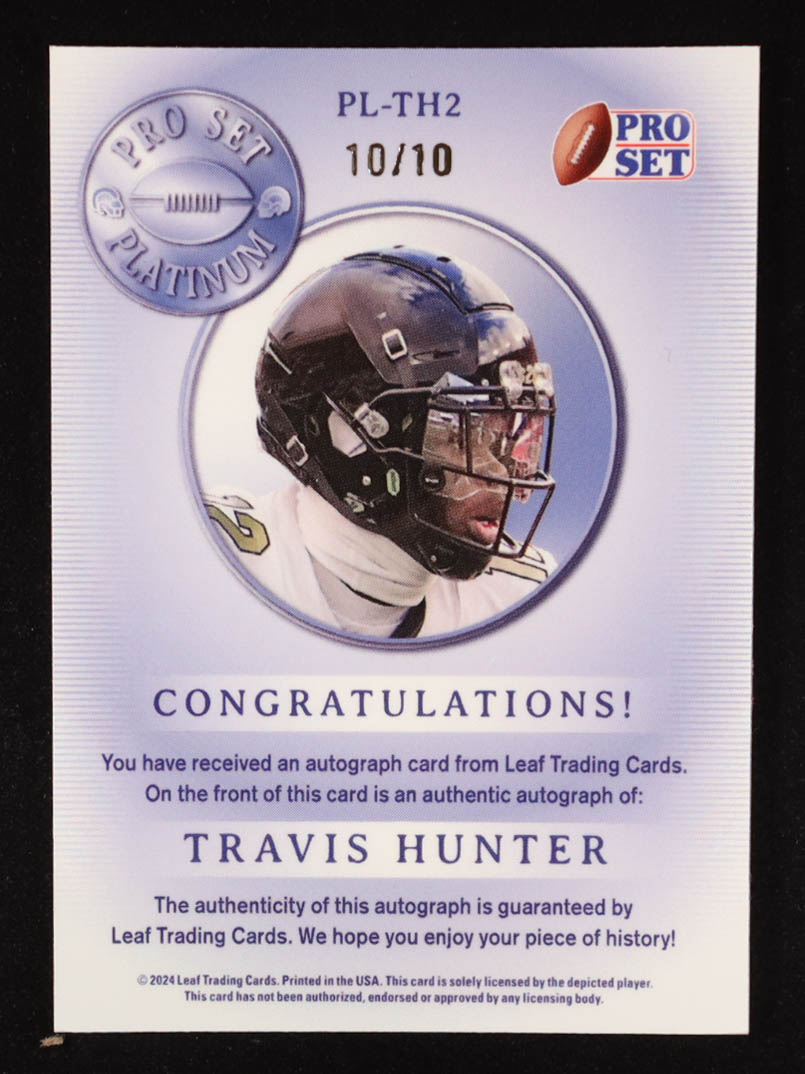 Travis Hunter 2024 Leaf Pro Set Platinum Autograph #PLTH2 RC #10/10