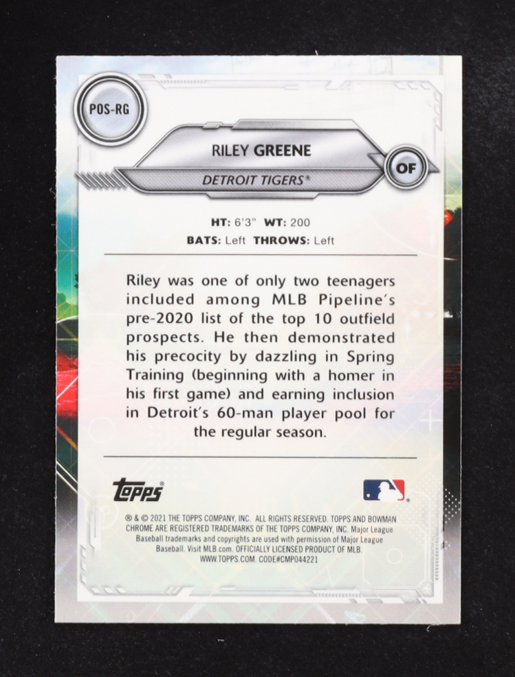 Riley Greene 2021 Bowman Chrome Positional Promise Refractors #POSRG RC