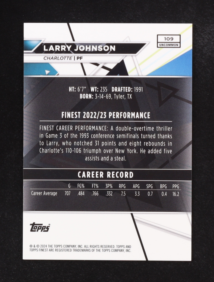 Larry Johnson 2023-24 Finest Black Refractors #109 UC #20/20