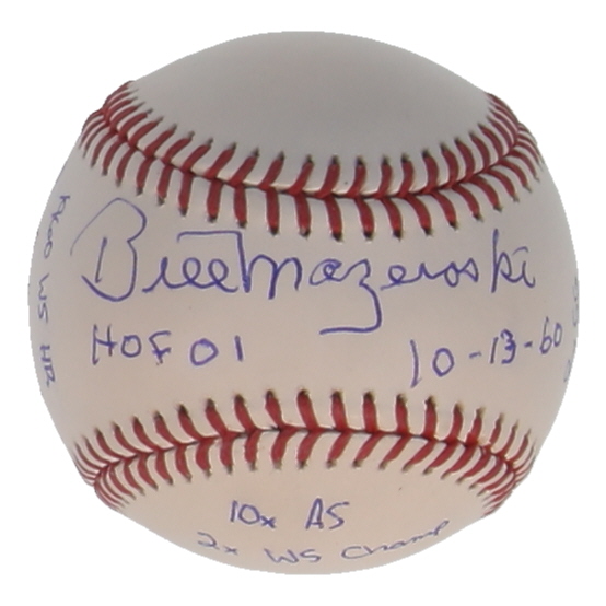 Rawlings Official Major League Baseball. Hand-signed and inscribed by Bill Mazeroski (Pittsburgh Pirates, HOF).