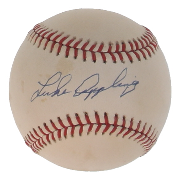 Rawlings Official American League Baseball. Hand-signed by Luke Appling (D. 1991, Chicago White Sox, HOF). Please note, there are stains throughout the baseball.
