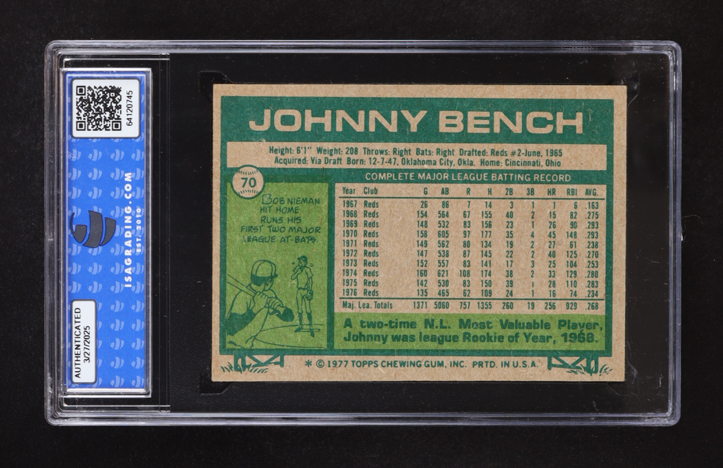 Johnny Bench 1977 Topps #70 (ISA 8)