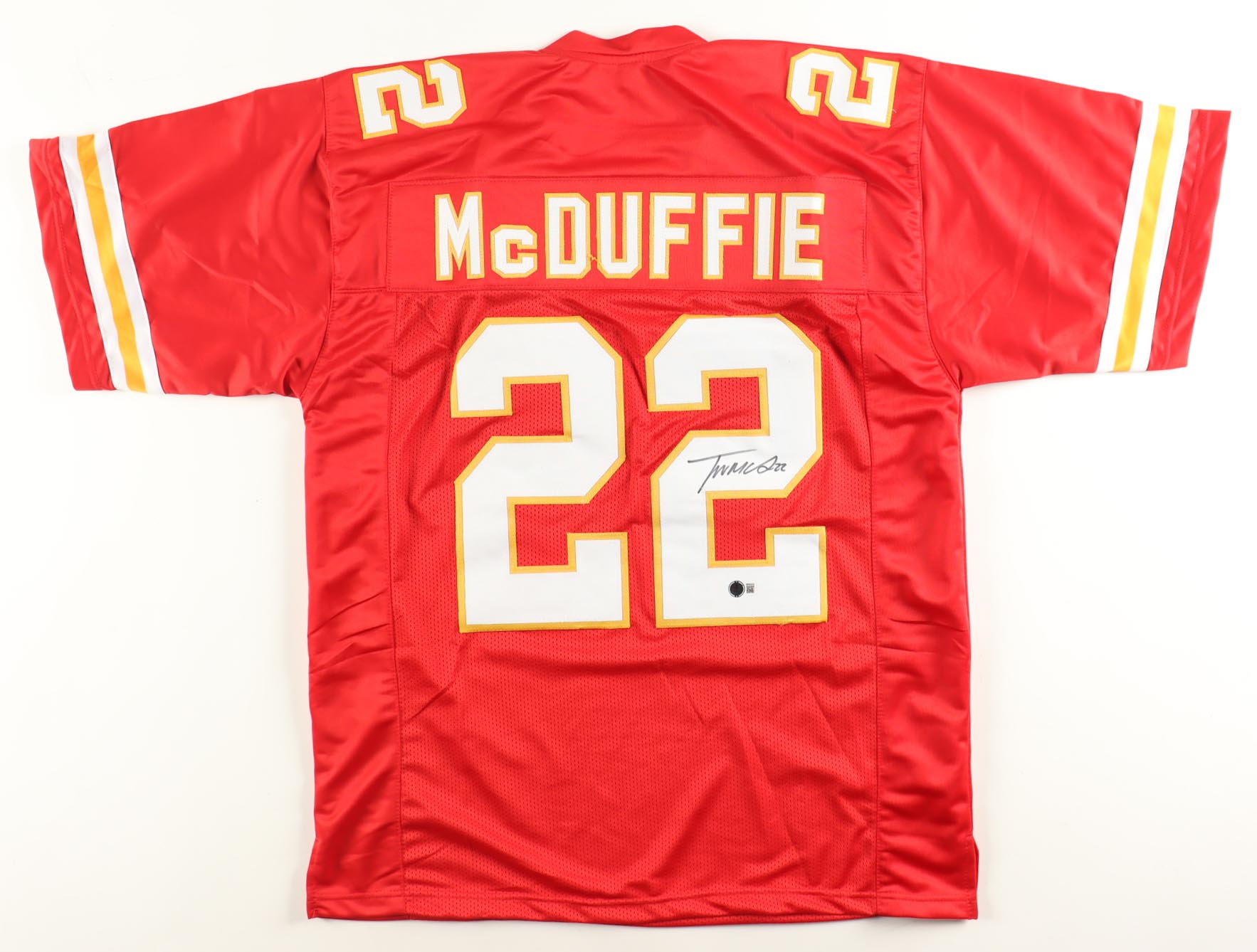 Custom jersey with everything sewn on, size XL. Hand-signed by Trent McDuffie.