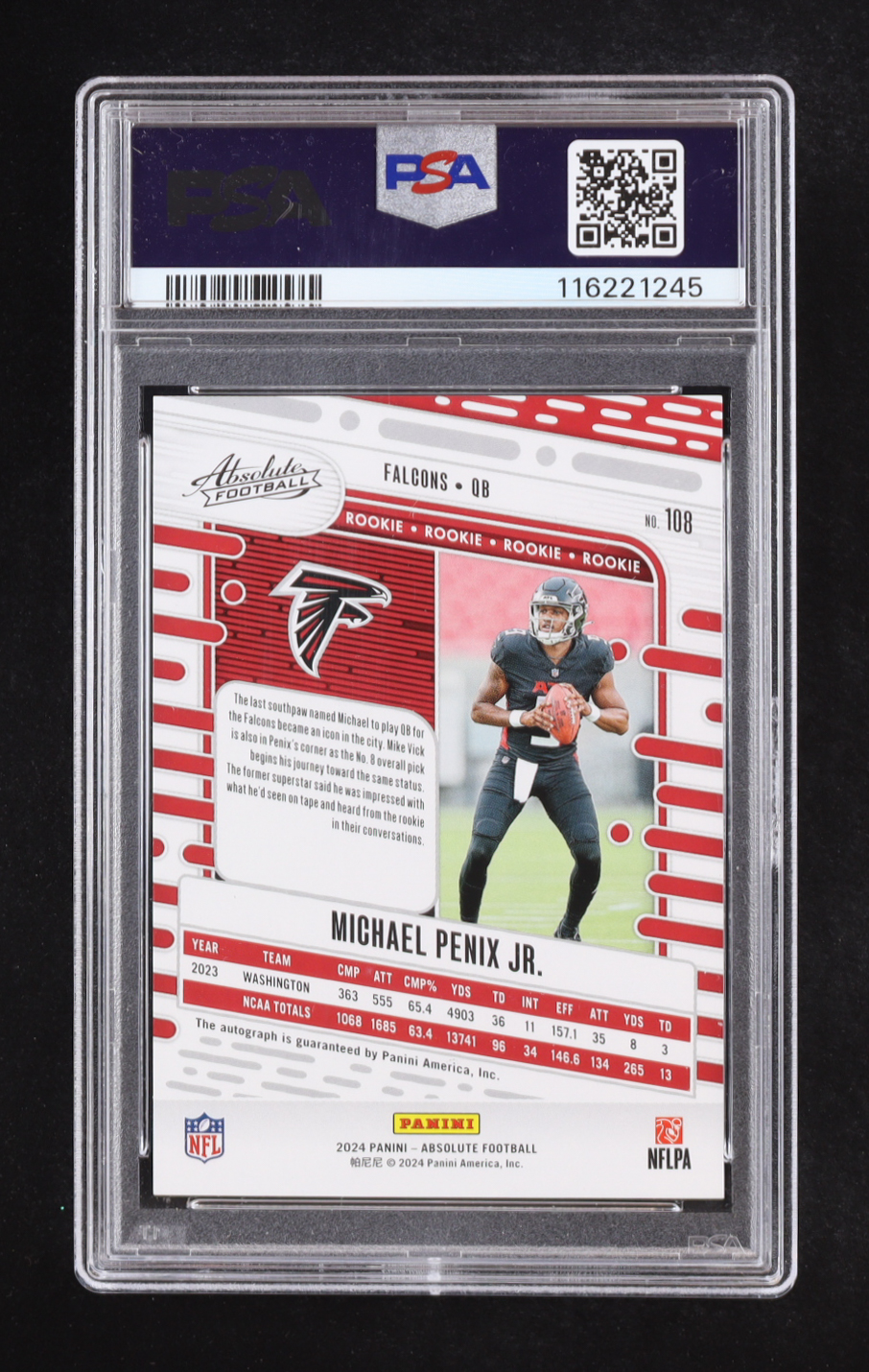 Michael Penix Jr. 2024 Absolute Signatures #108 RC (PSA 9)
