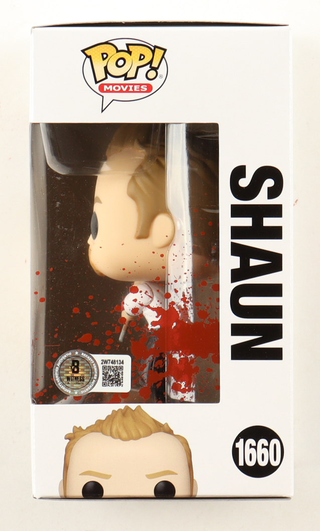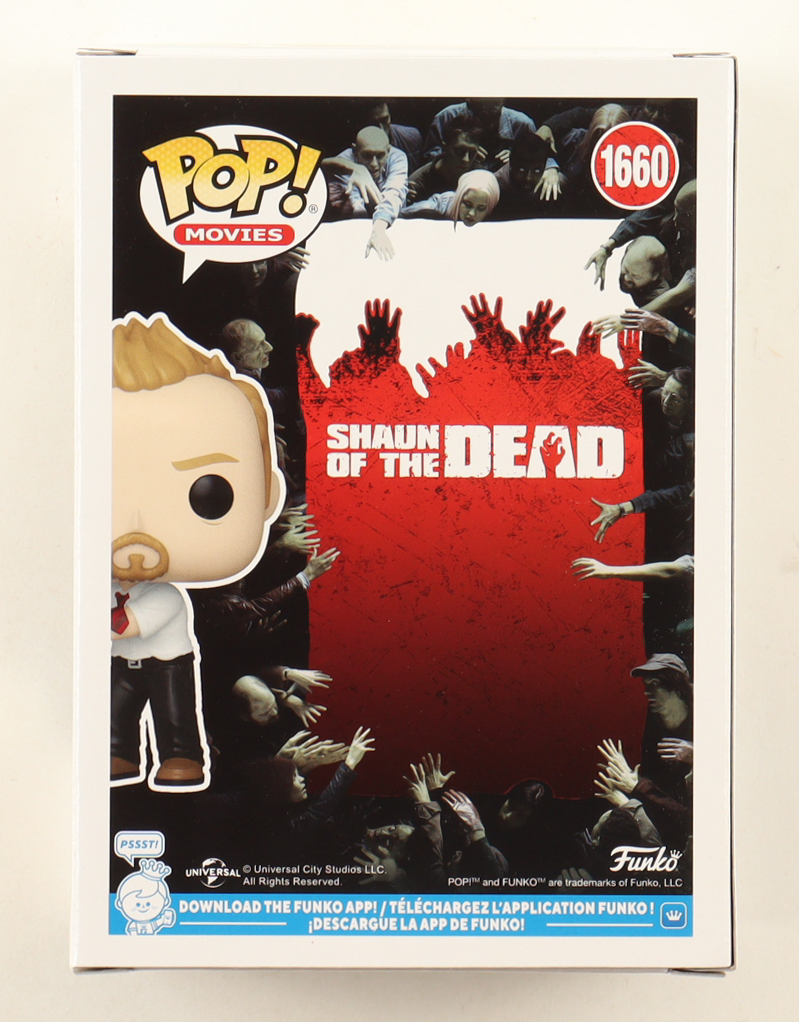 Funko Pop! Vinyl Figure measures approximately 4" tall and has been hand-signed and inscribed on the packaging by Simon Pegg (Shaun).