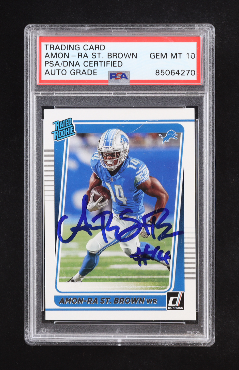Amon-Ra St. Brown Signed 2021 Donruss Rated Rookie #10 RC (PSA | Auto 10)