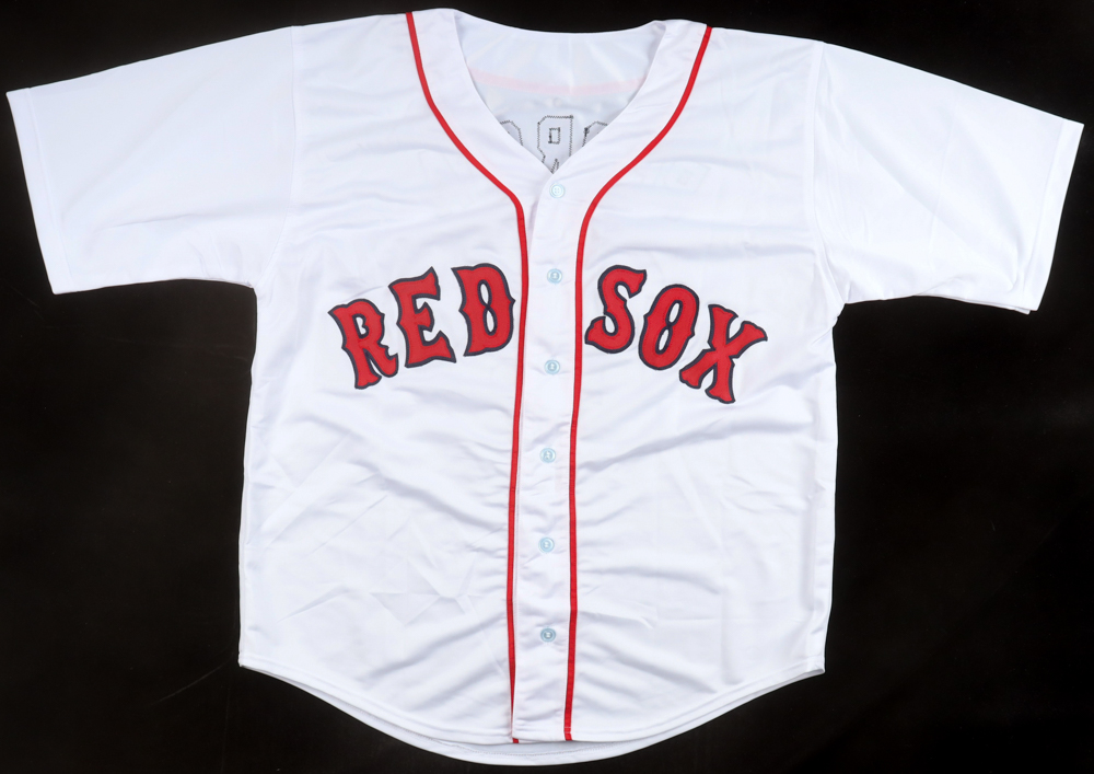 Custom jersey with everything sewn on, size XL. Hand-signed by Dustin Pedroia.