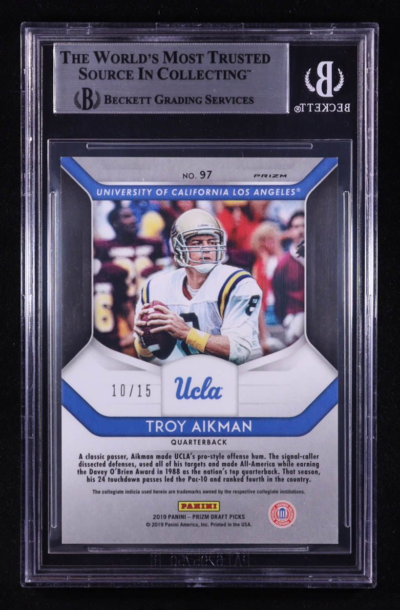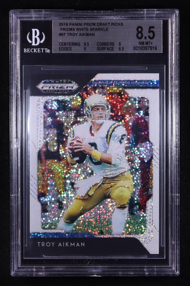 Troy Aikman 2019 Prizm Draft Picks White Sparkle #97 #10/15 (BGS 8.5)
