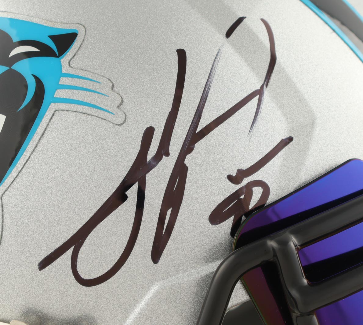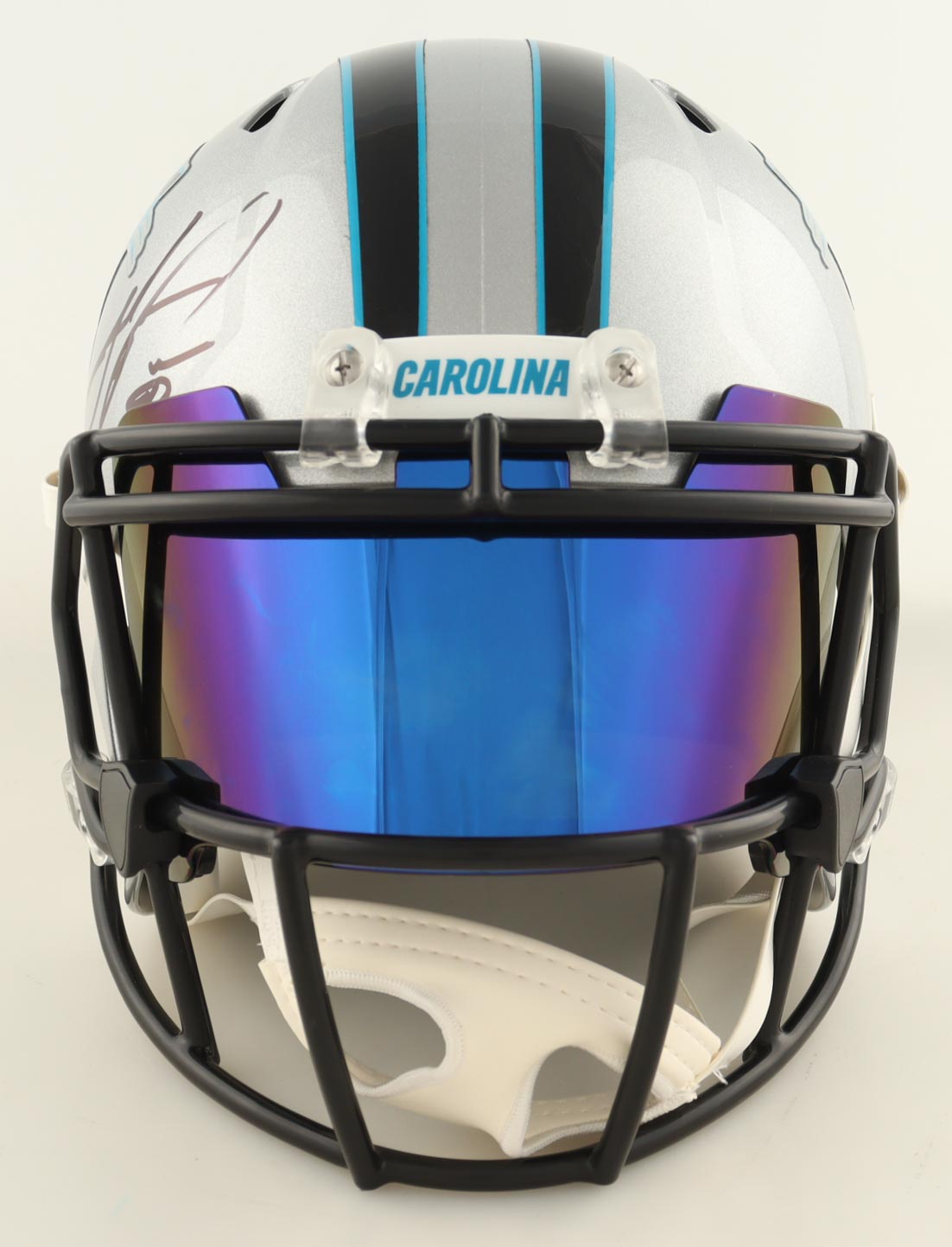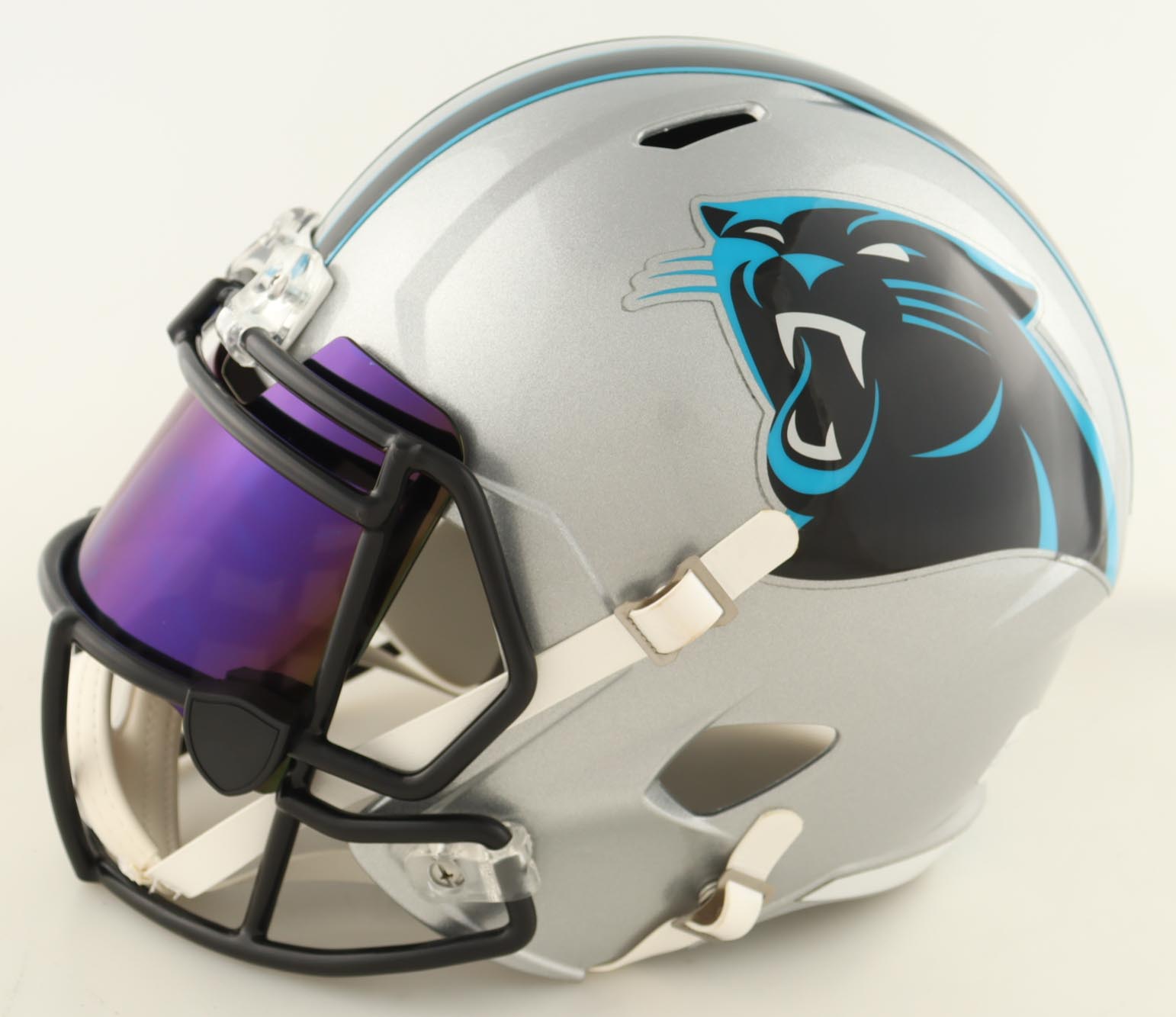 Riddell Carolina Panthers full-size replica Speed helmet with visor. Hand-signed by Julius Peppers (HOF).