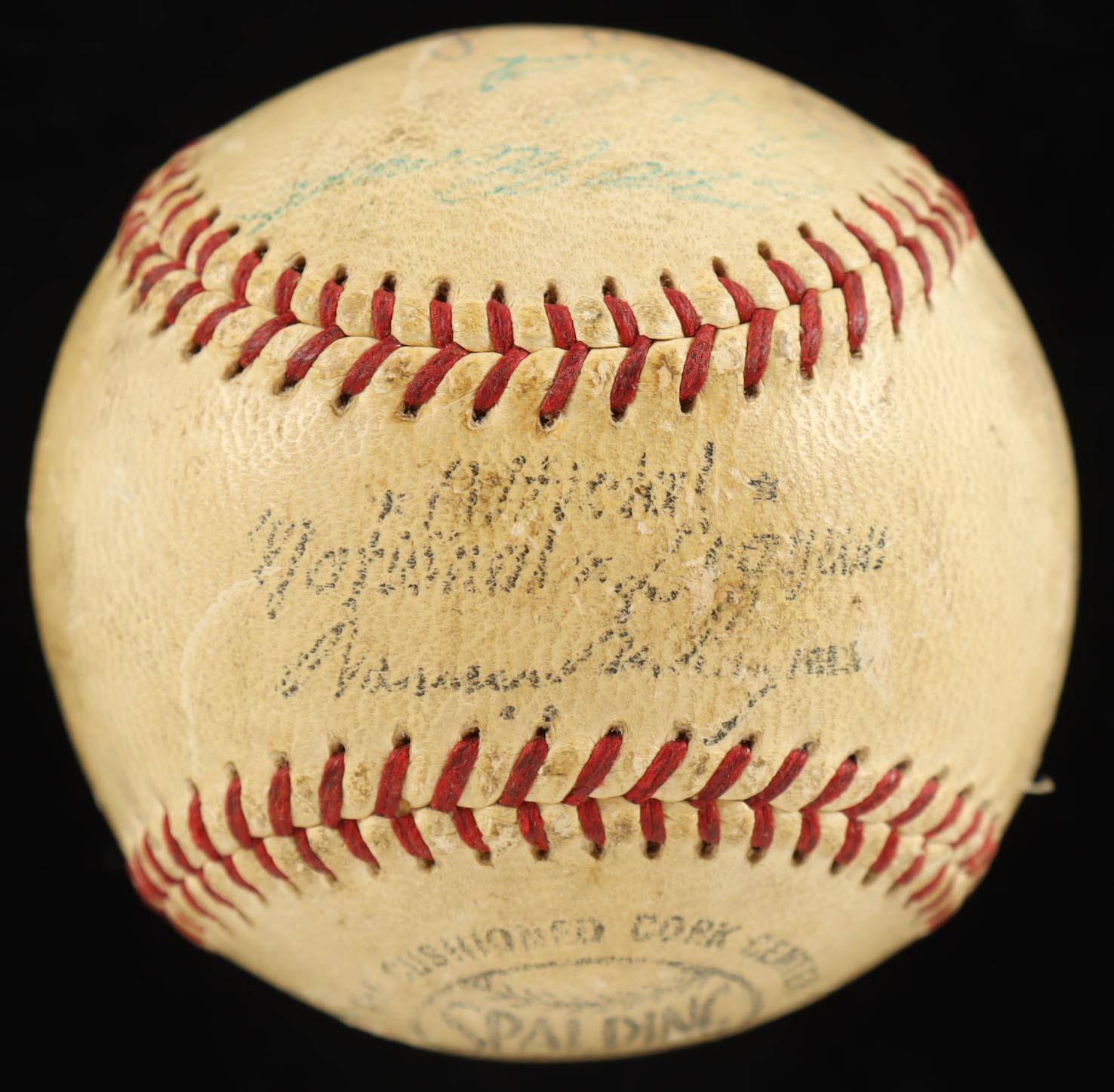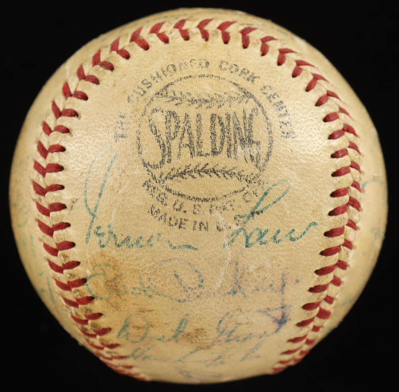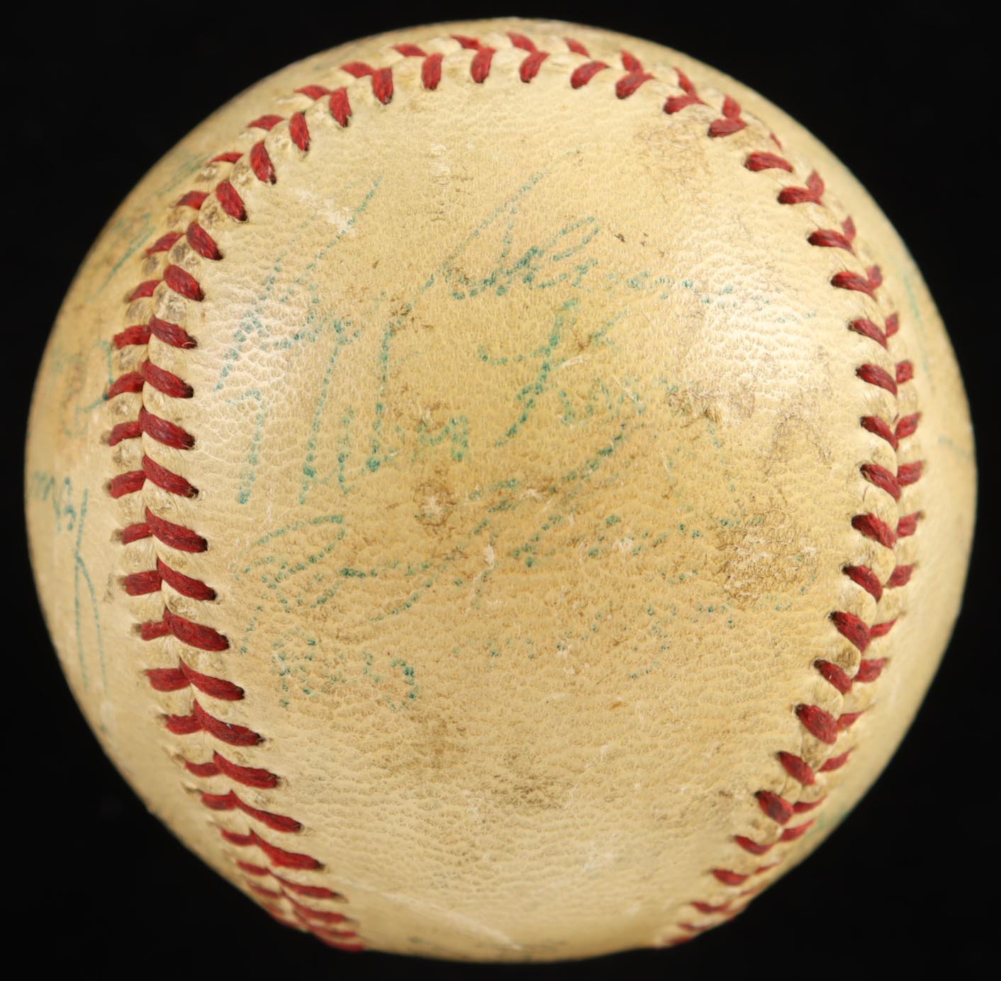 Spalding Official National League Baseball. Hand-signed by Roberto Clemente, Bill Mazeroski, Bobby Bragan, Vern Law, Dick Groat, Roy Face, Bill Virdon, Frank Thomas, Bob Friend, Bob Skinner, Bob Purkey, Hank Foiles, Joe Trimble, and (9) others. Please note, the baseball is naturally toned and the majority of the signatures are faded.