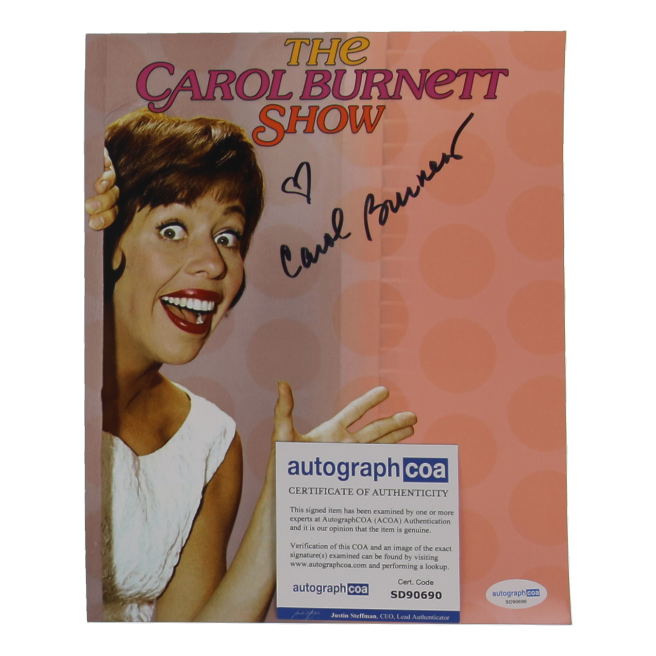 Photo measures 8" x 10" in size and has been hand-signed by Carol Burnett.