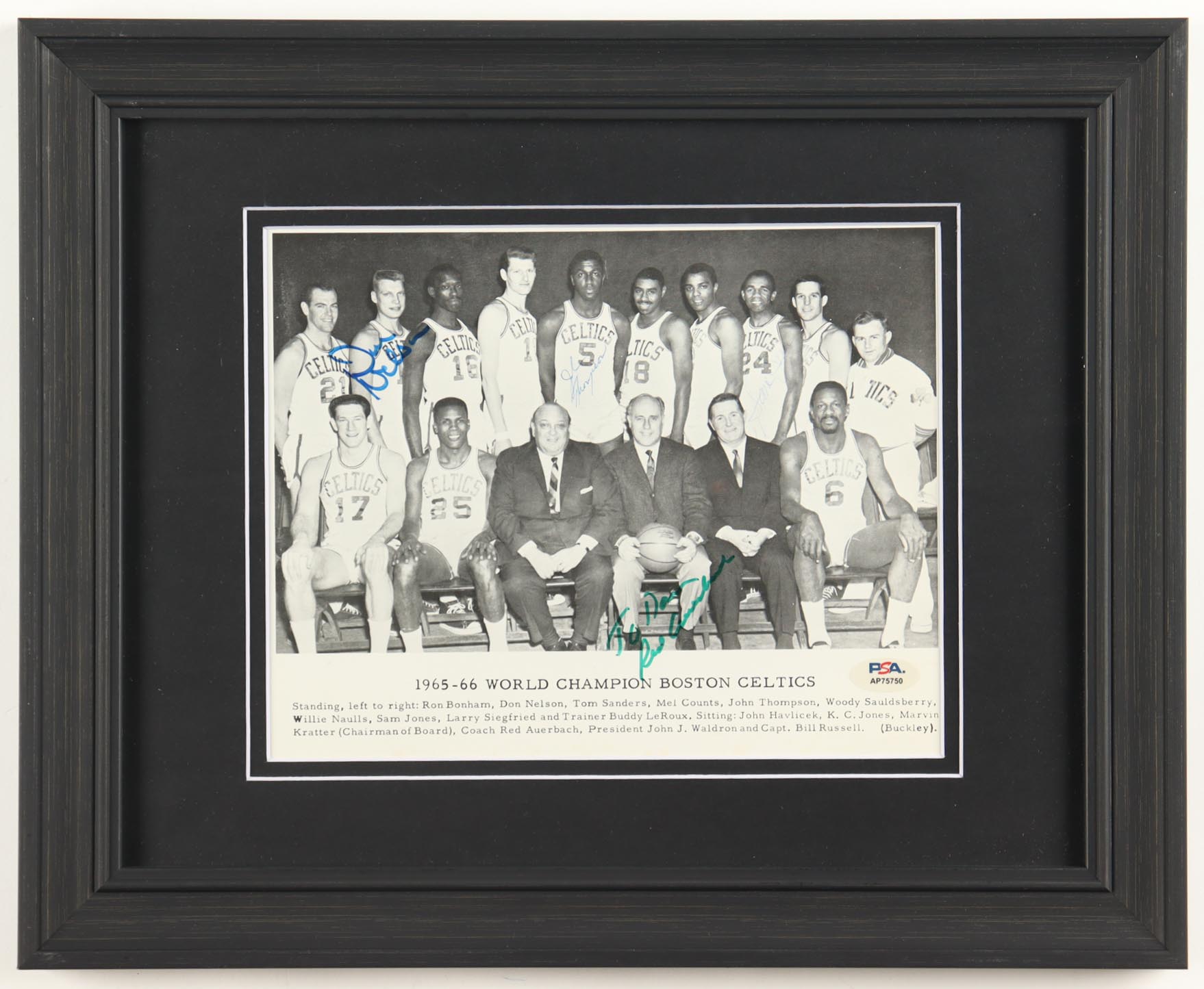 1966 Celtics NBA Champions Custom Framed Photo Signed By (4) with Red Auerbach, Sam Jones, John Thompson & Dave Nelson (PSA)