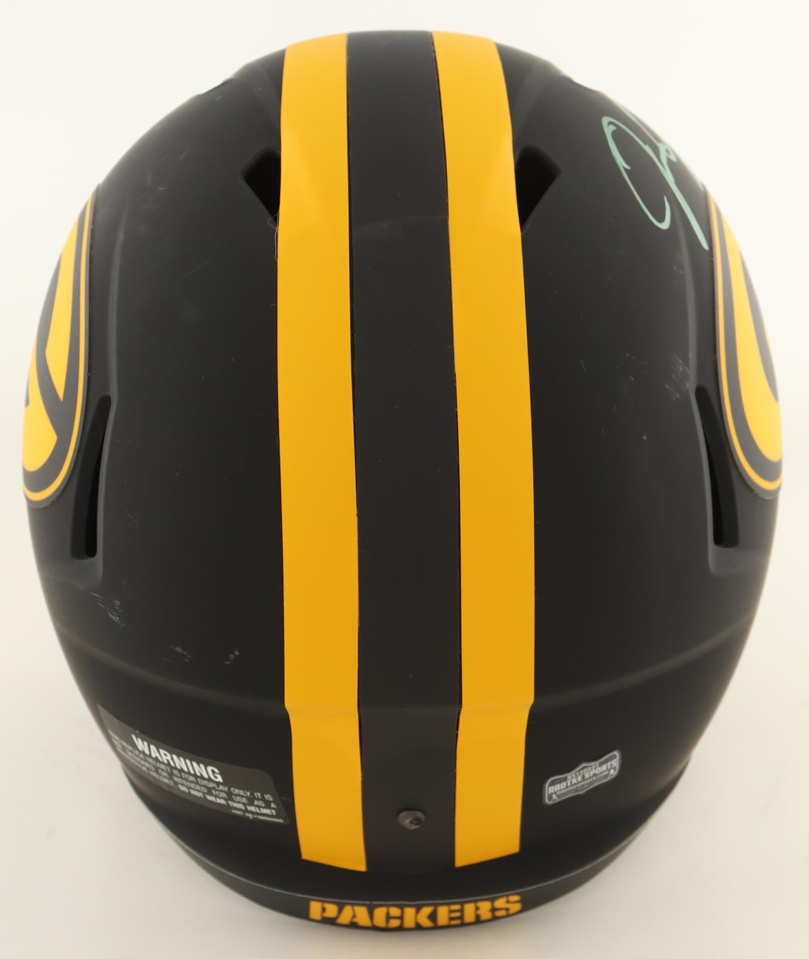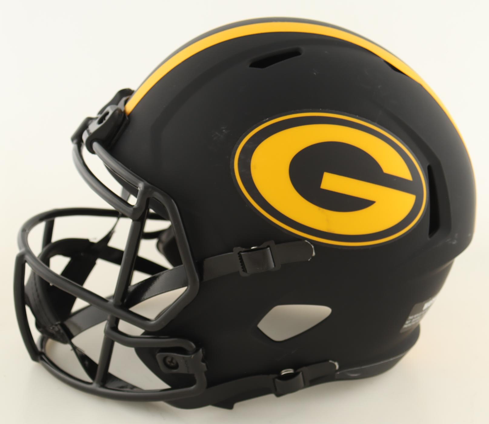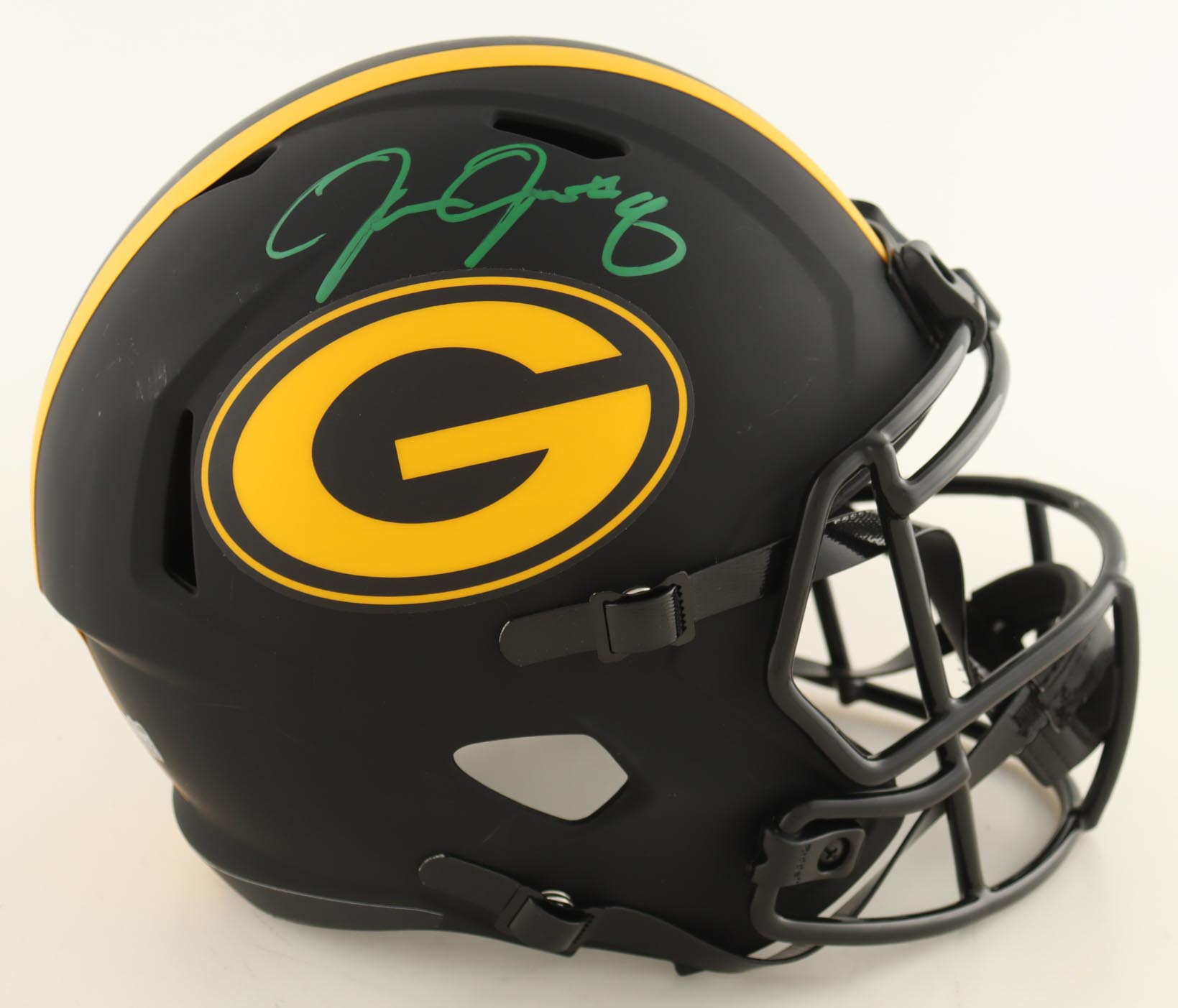 Riddell Green Bay Packers full-size replica Eclipse Alternate Speed helmet. Hand-signed by Josh Jacobs.