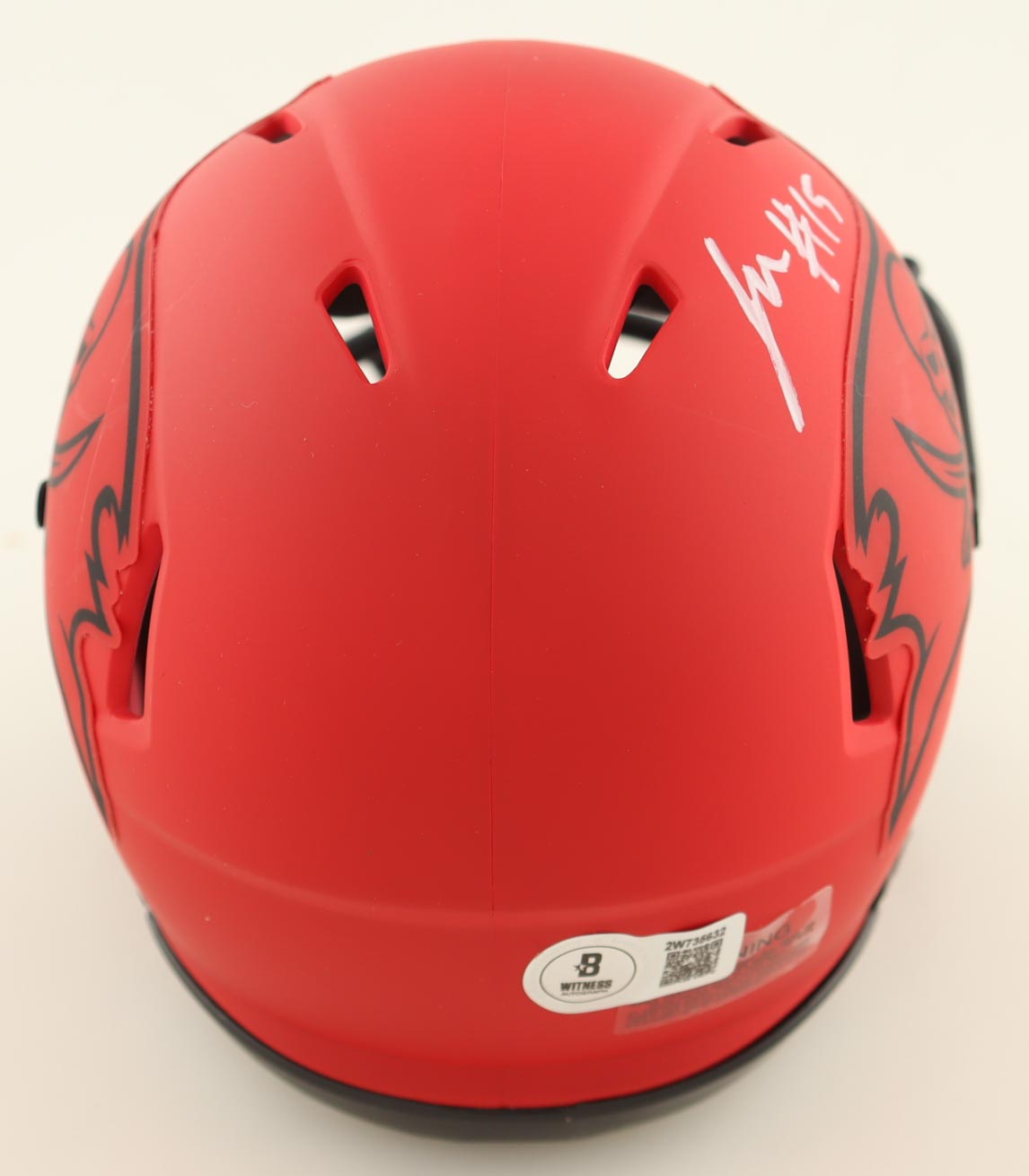 Riddell Tampa Bay Buccaneers Rave Alternate Speed mini helmet. Hand-signed by Jalen McMillan.