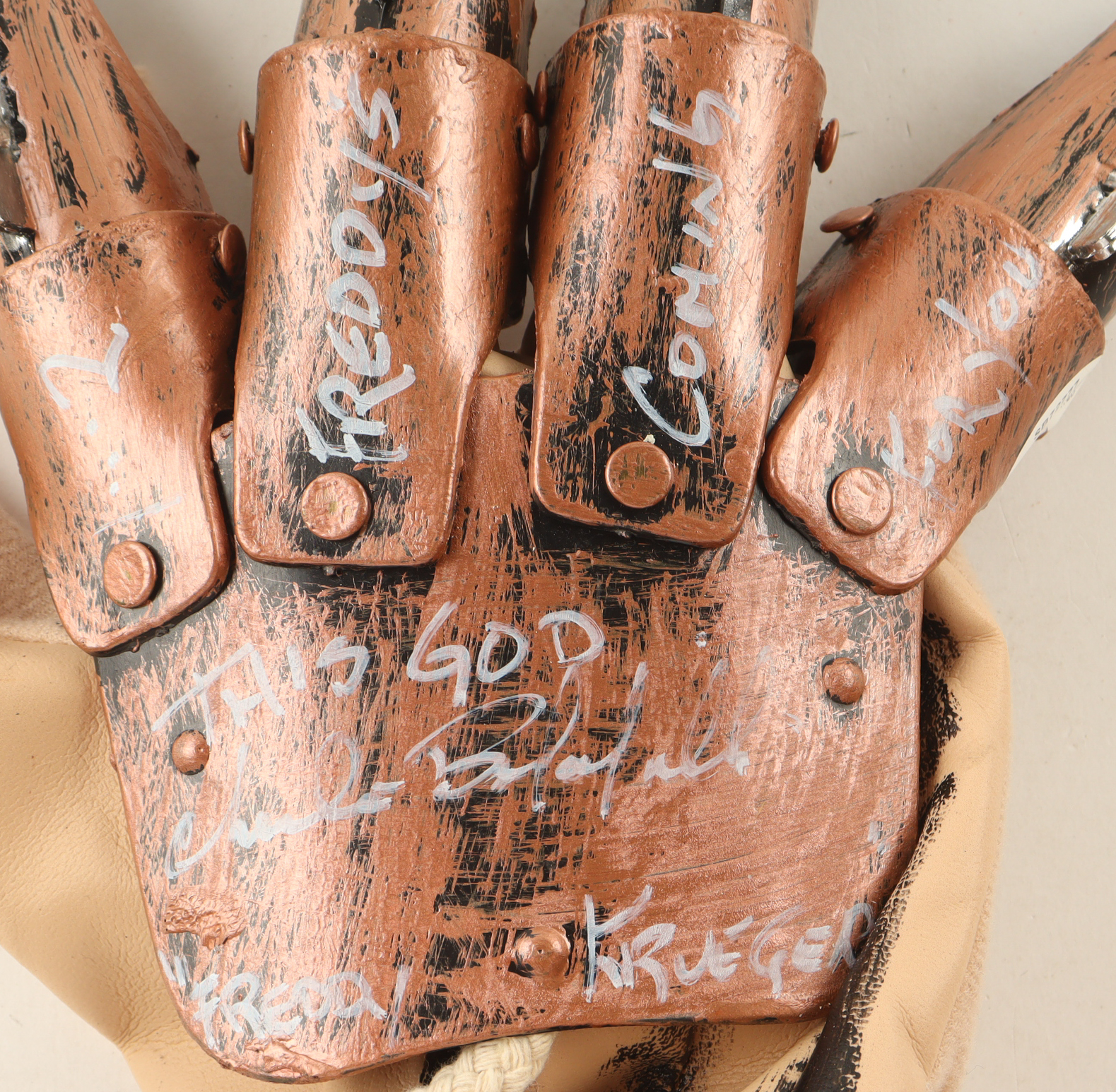 "A Nightmare on Elm Street" Freddy Krueger replica glove. Hand-signed and inscribed by Charles Belardinelli.