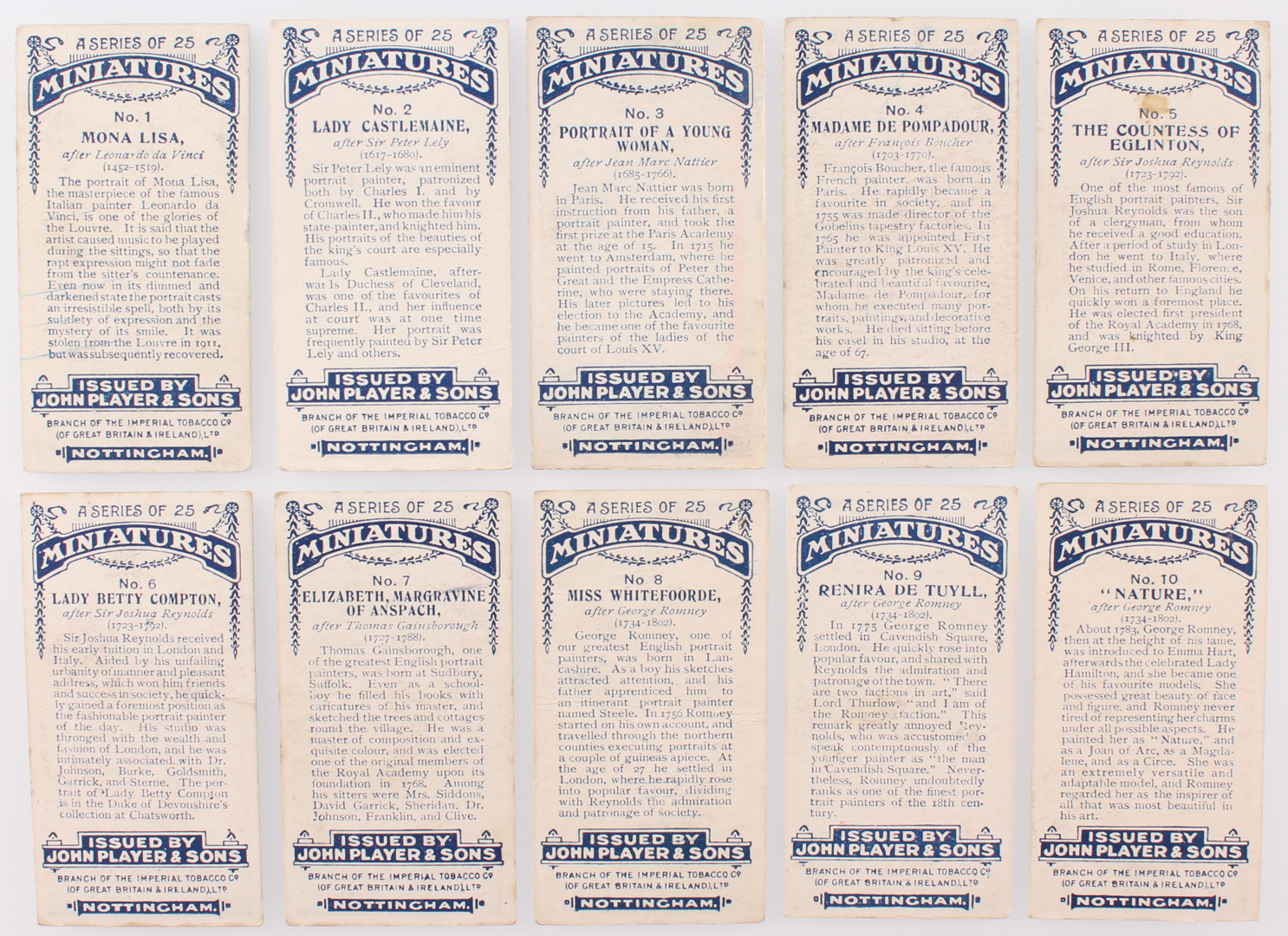 1923 Player's "Miniatures" Complete Set of (25) Cigarette Cards with Mona Lisa