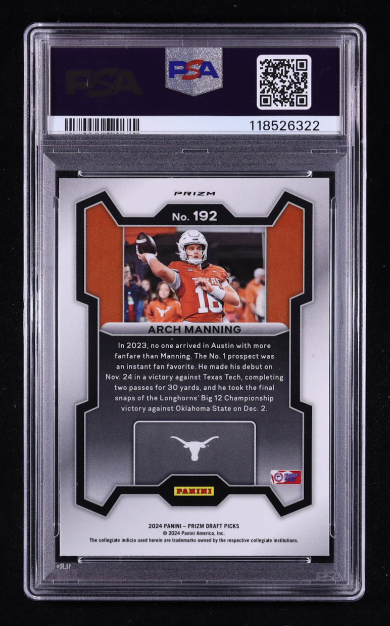 Arch Manning 2024 Panini Prizm Draft Picks Prizms Silver #192 RC (PSA 9)