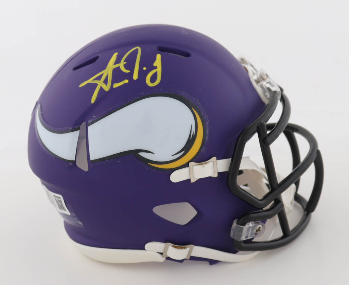 Riddell Minnesota Vikings Speed mini helmet. Hand-signed by Aaron Jones.