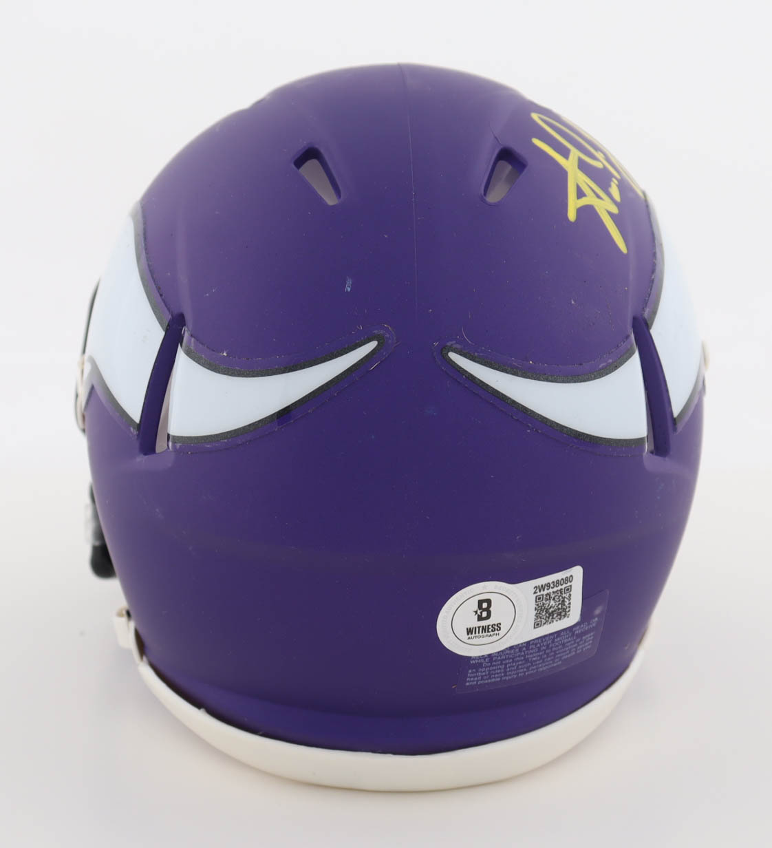 Riddell Minnesota Vikings Speed mini helmet. Hand-signed by Aaron Jones.