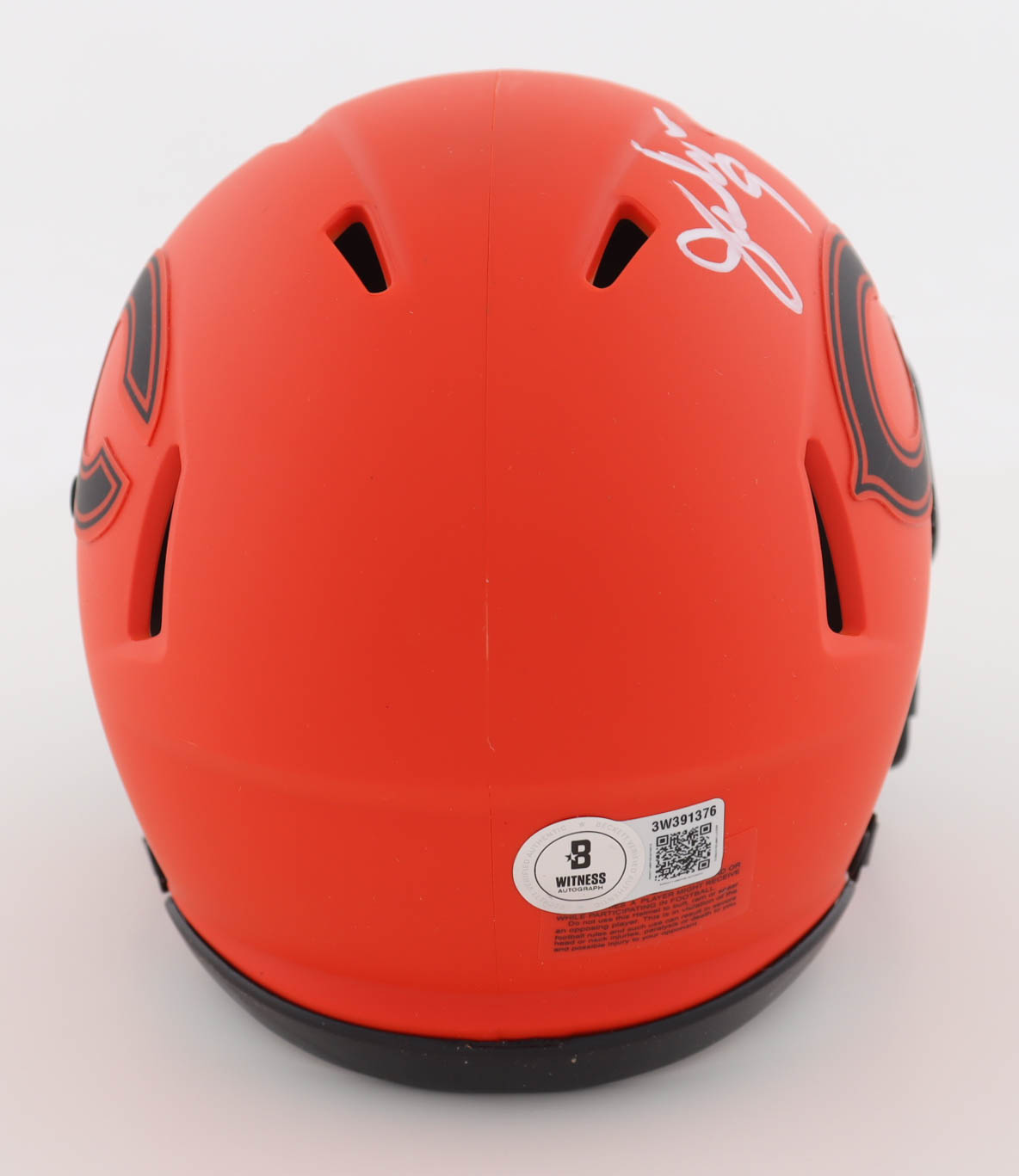 Riddell Chicago Bears Rave Alternate Speed Mini Helmet. Hand-signed by Jim McMahon. Please note, there is a scratch on top of the helmet.