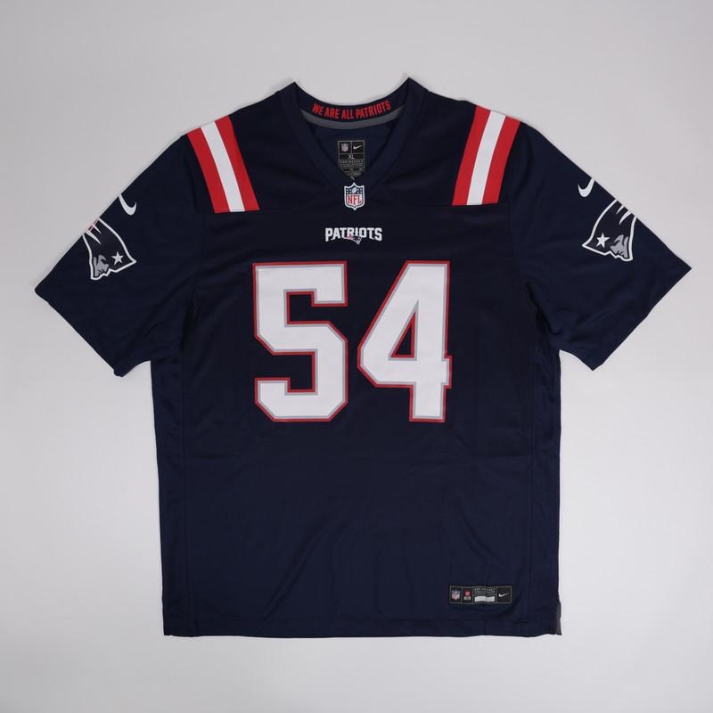 Nike jersey with everything pressed on, size XL. Hand-signed by Tedy Bruschi (New England Patriots).
