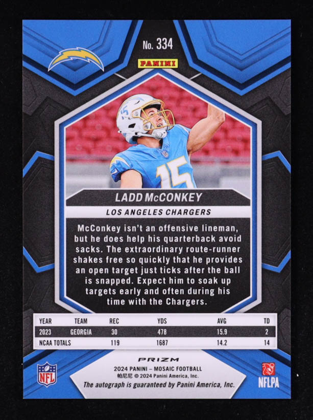 Ladd McConkey 2024 Panini Mosaic Rookie Autographs Mosaic #334 RC