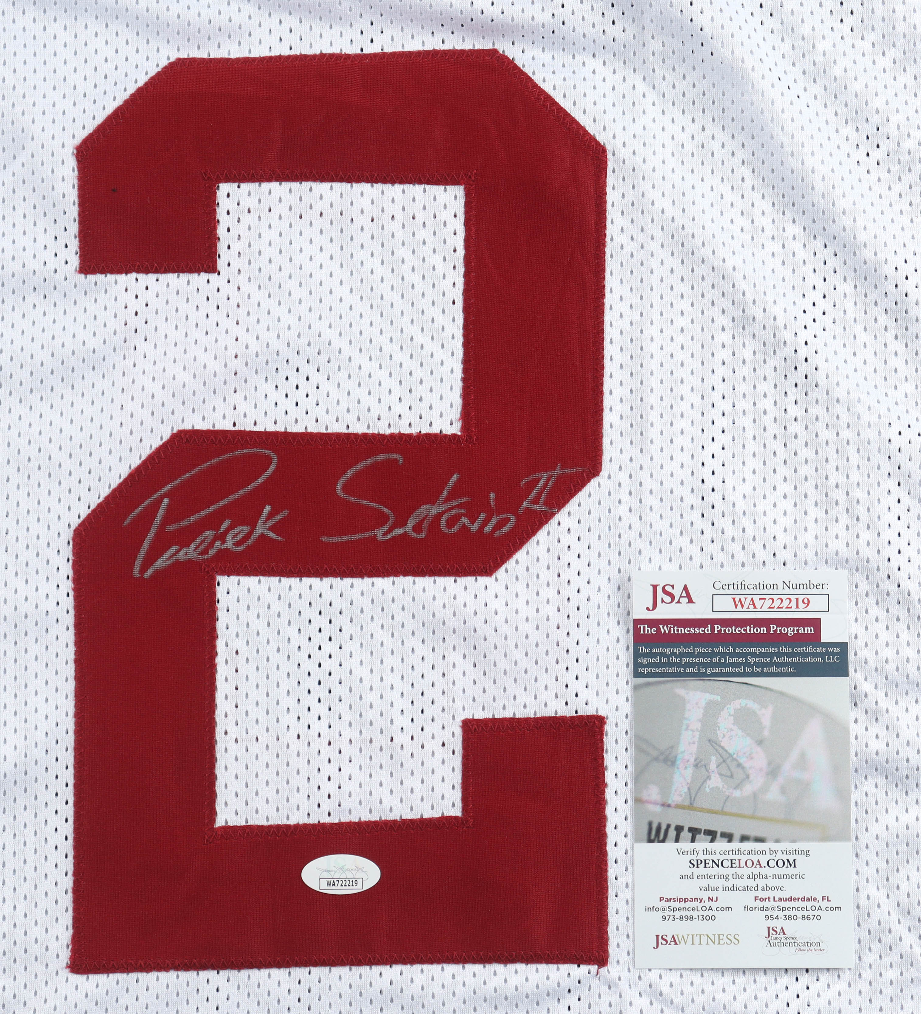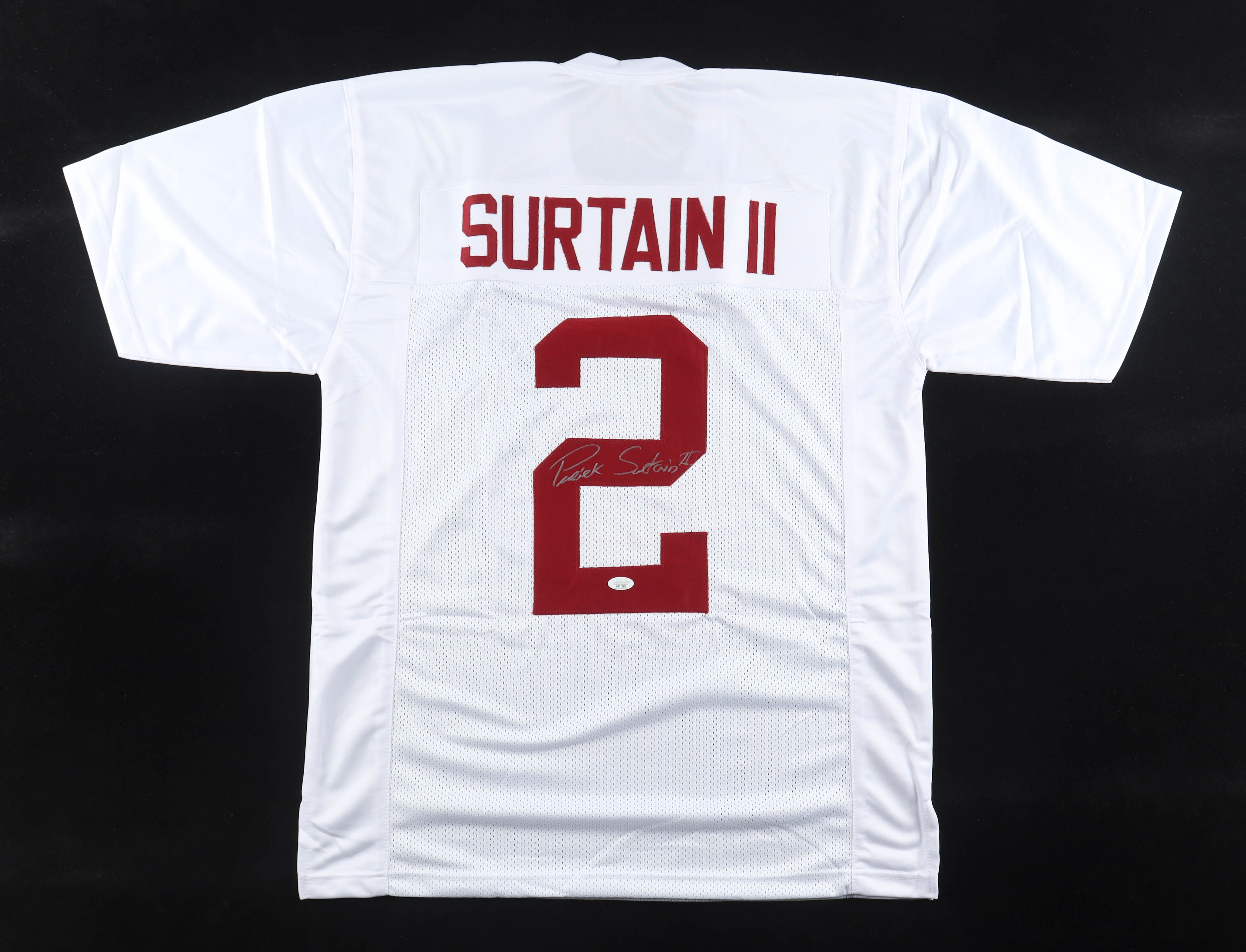 Custom jersey with everything sewn on, size XL. Hand-signed by Patrick Surtain II.