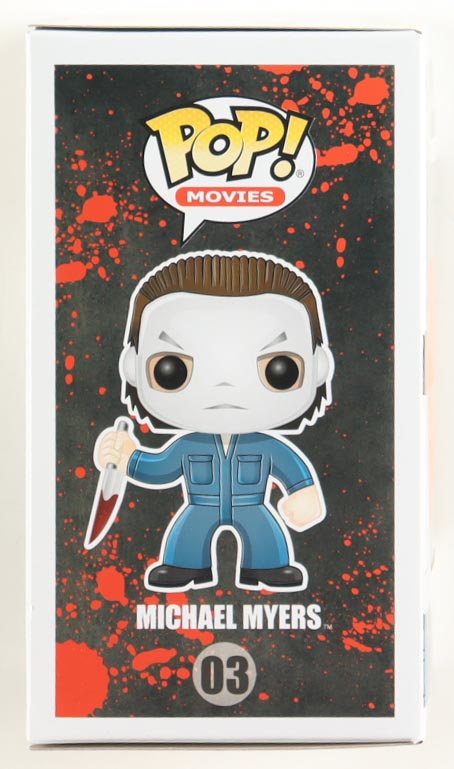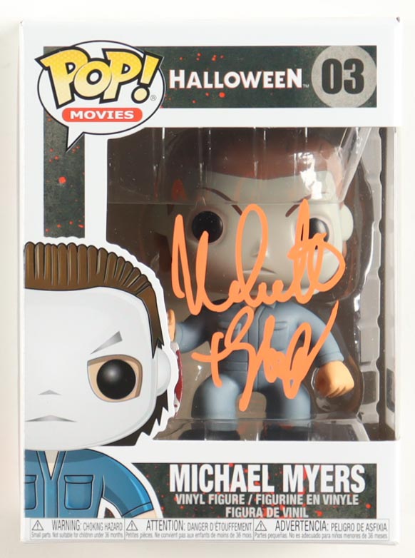 Vinyl figure measures approximately 4" tall and the packaging has been hand-signed and inscribed by Nick Castle (Michael Myers). Please note, there is creasing on the back panel of the packaging.