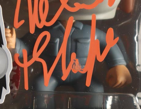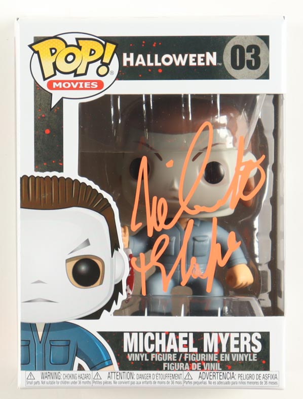 Vinyl figure measures approximately 4" tall and the packaging has been hand-signed and inscribed by Nick Castle (Michael Myers). Please note, the autograph is smudged.