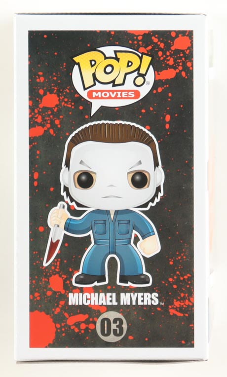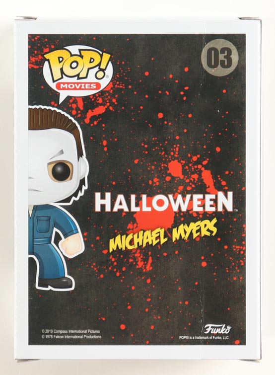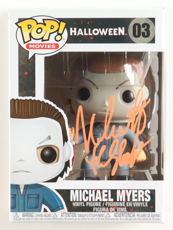 Vinyl figure measures approximately 4" tall and the packaging has been hand-signed and inscribed by Nick Castle (Michael Myers). Please note, there is creasing on the back panel of the packaging.