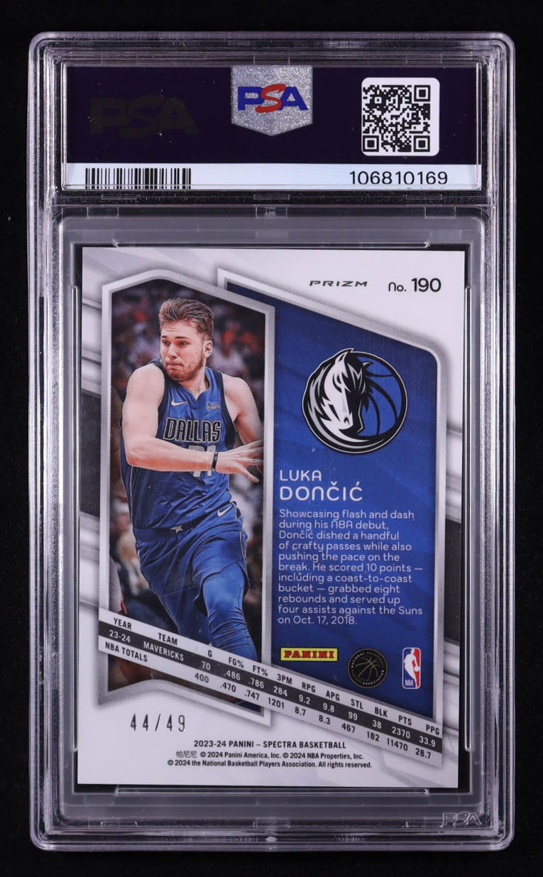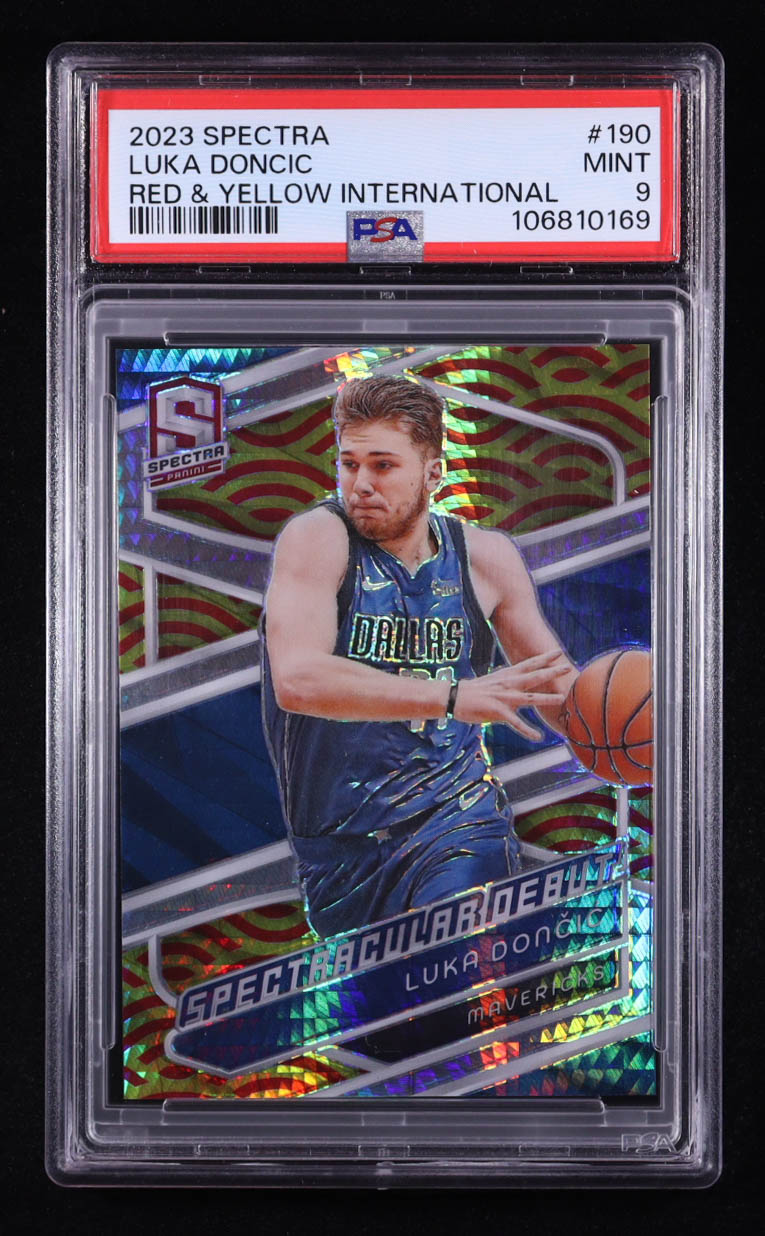 Luka Doncic 2023-24 Panini Spectra International Red and Yellow #190 SD #44/49 (PSA 9)