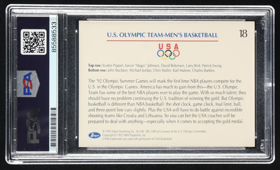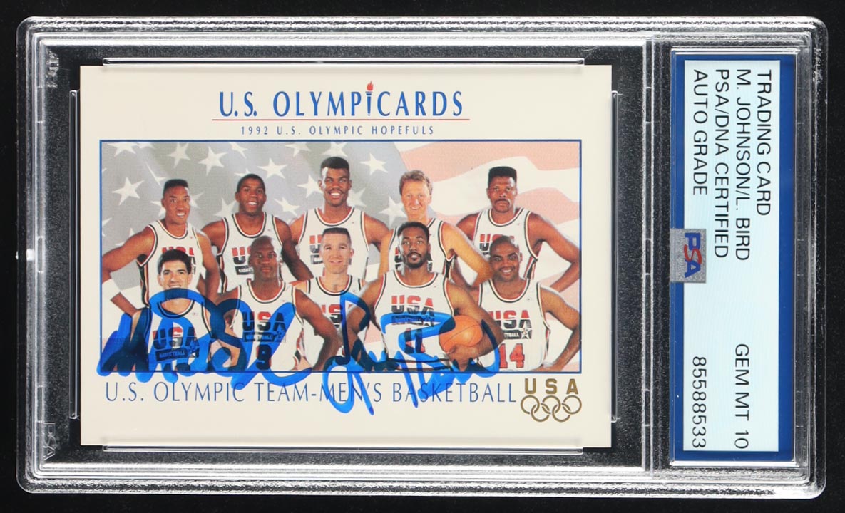 Larry Bird & Magic Johnson Signed U.S. Olympic Basketball Team 1992 Impel U.S. Olympic Hopefuls #18 (PSA | Autograph Graded PSA 10)