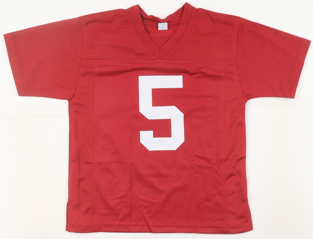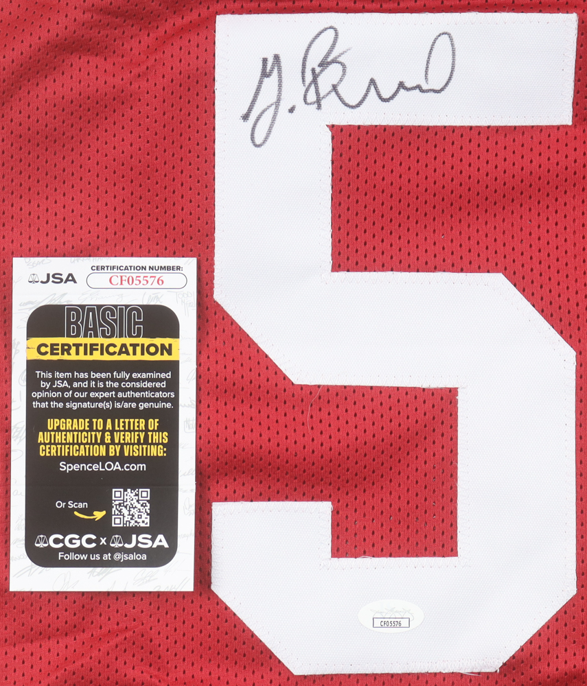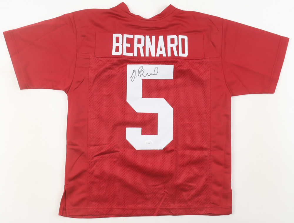 Custom jersey with everything sewn on, size youth XL. Hand-signed by Germie Bernard.