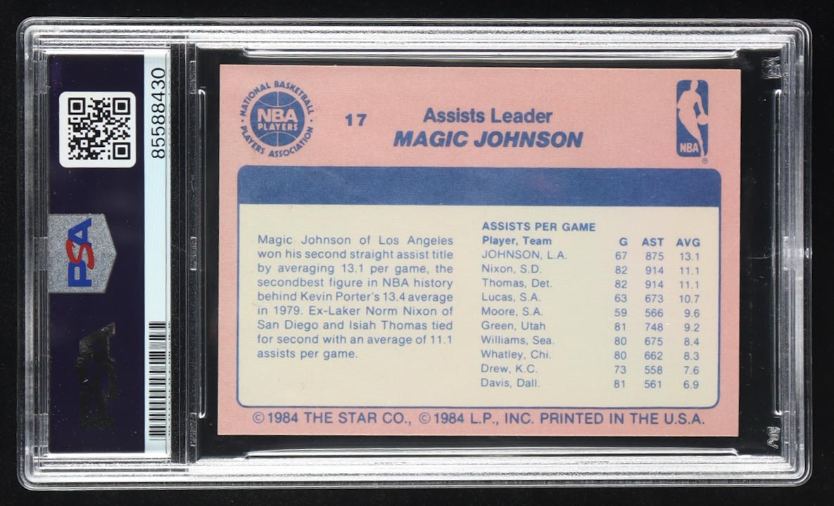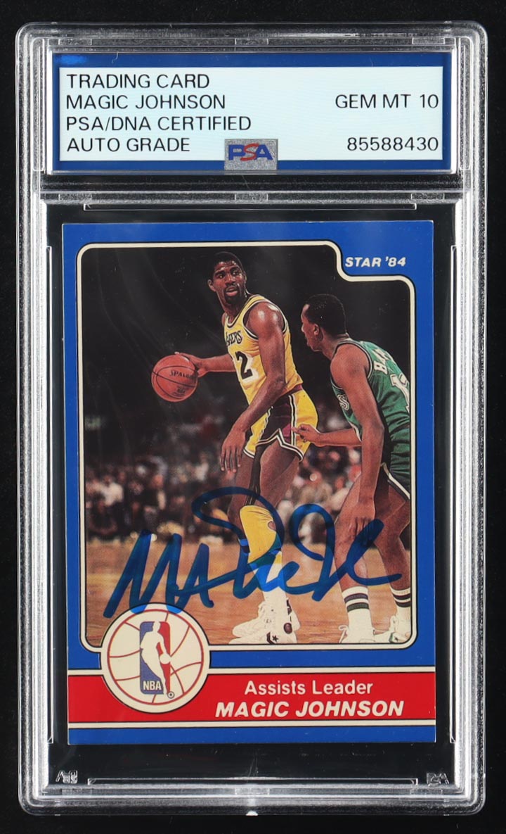 Magic Johnson Signed 1984 Star Magic Johnson #17 / 1984 Assists Leader (PSA | Autograph Grade 10)
