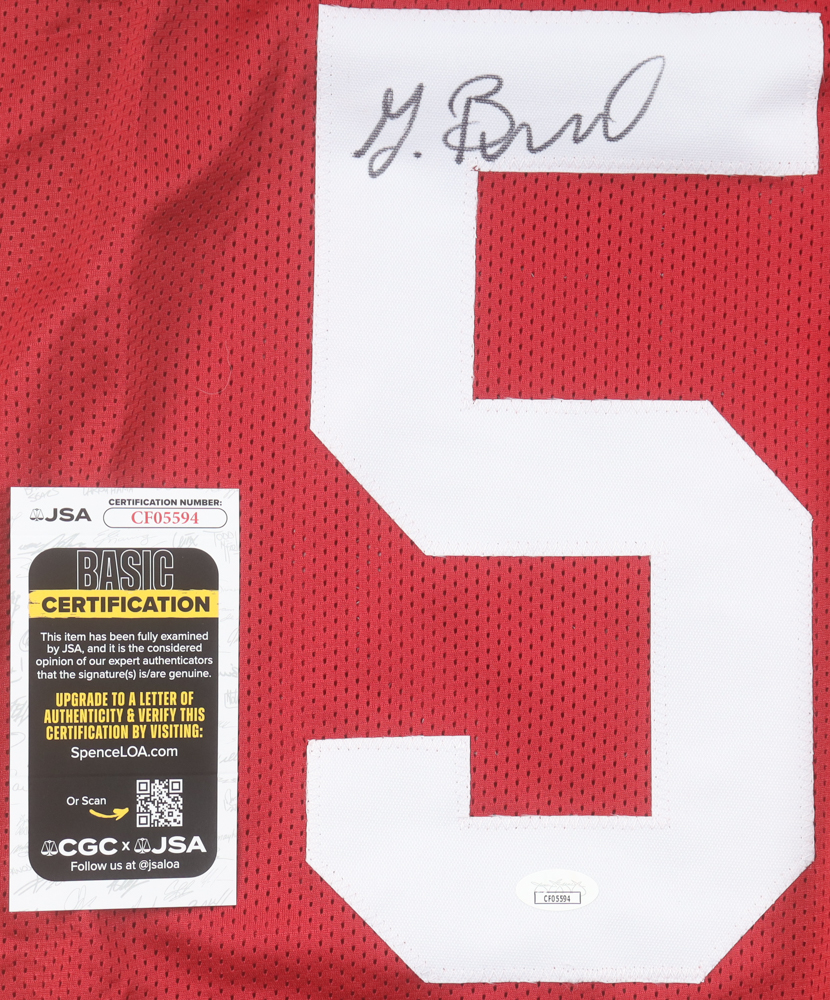 Custom jersey with everything sewn on, size Youth XL. Hand-signed by Germie Bernard.