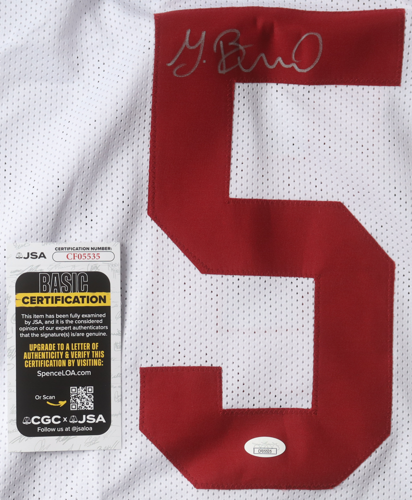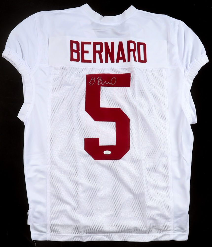 Custom jersey with everything sewn on, size XL. Hand-signed by Germie Bernard.