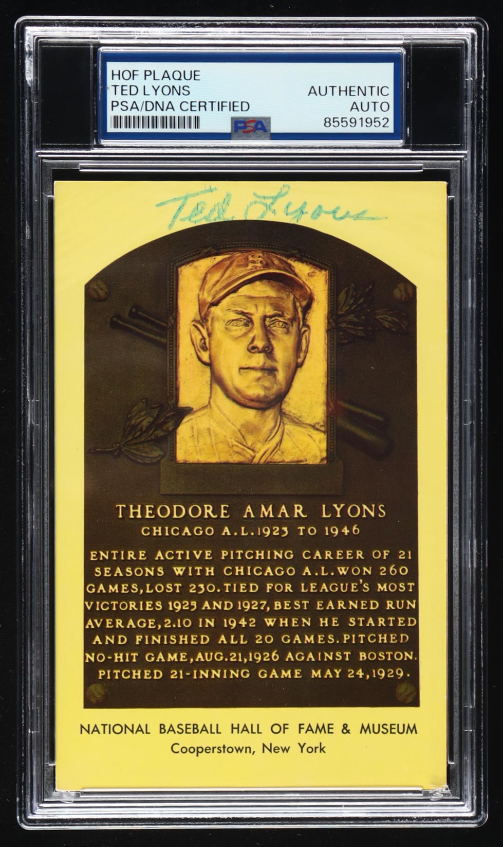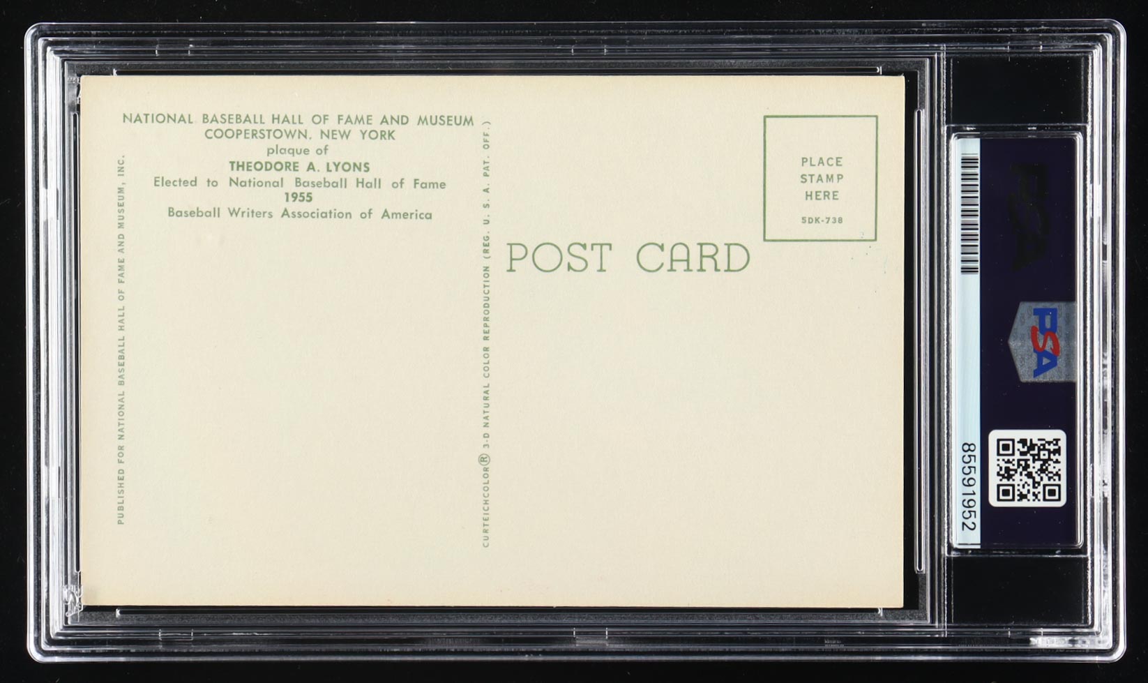 Ted Lyons Signed Hall Of Fame Plaque Postcard (PSA)
