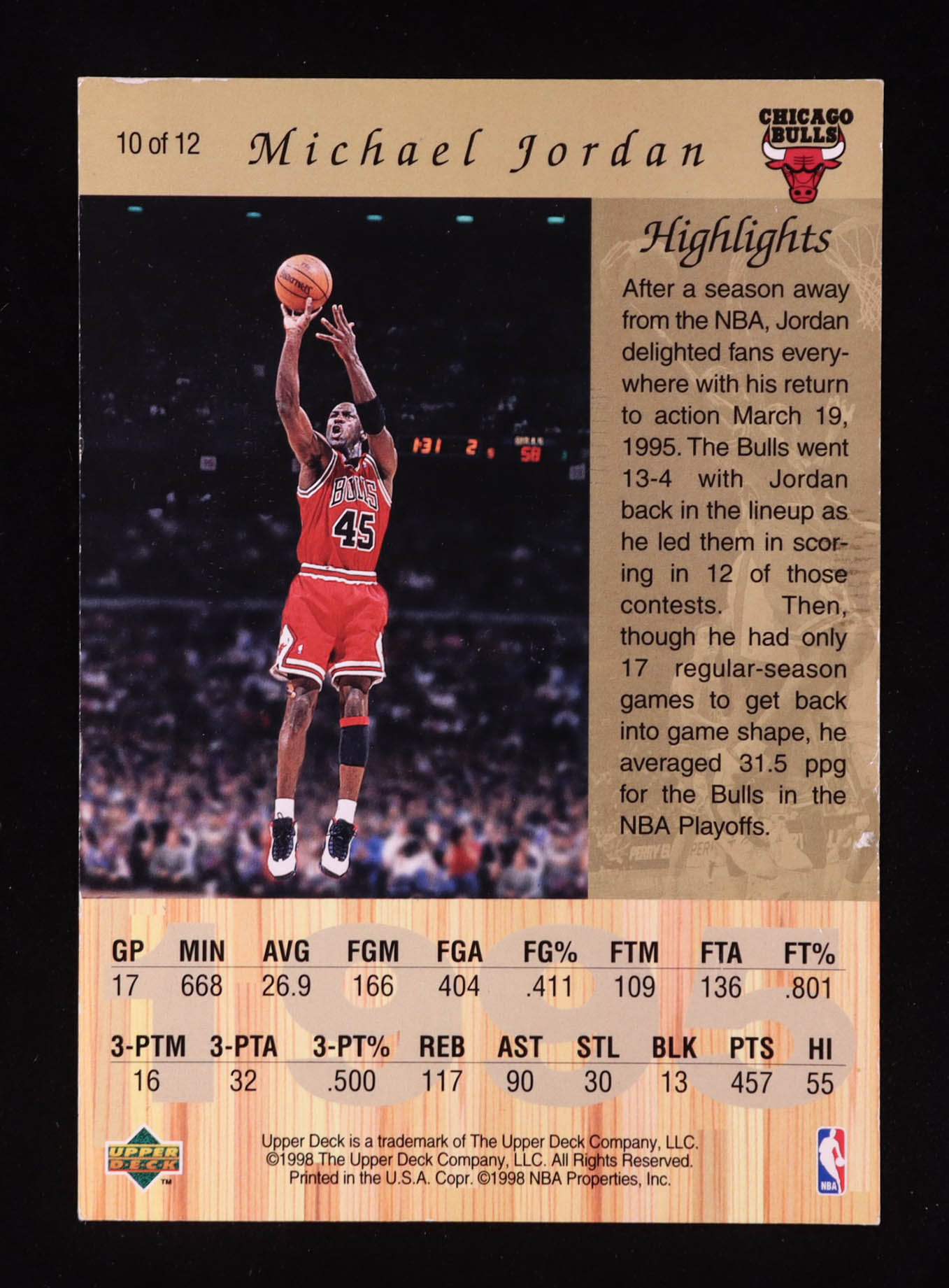 Michael Jordan 1998 Upper Deck Michael Jordan Gatorade #10