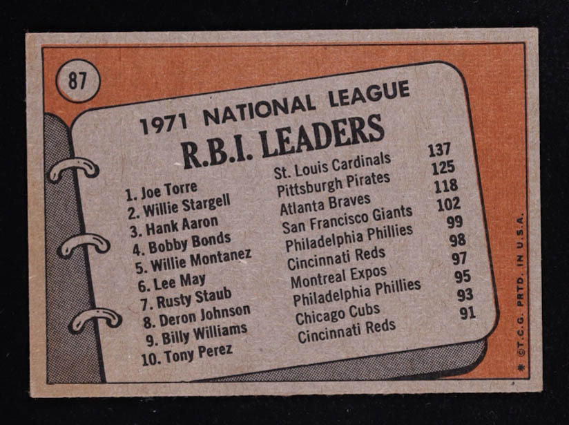Joe Torre / Willie Stargell / Hank Aaron 1972 Topps #87 NL RBI Leaders