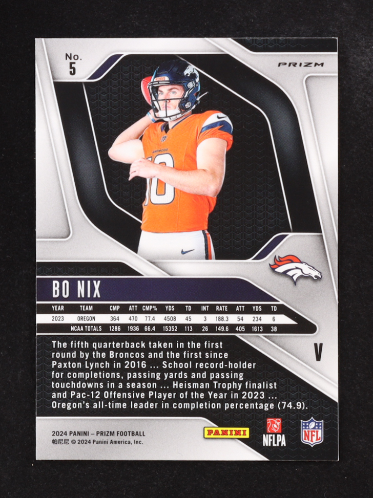 Bo Nix 2024 Panini Prizm Rookie Variations Prizms Silver #5 RC