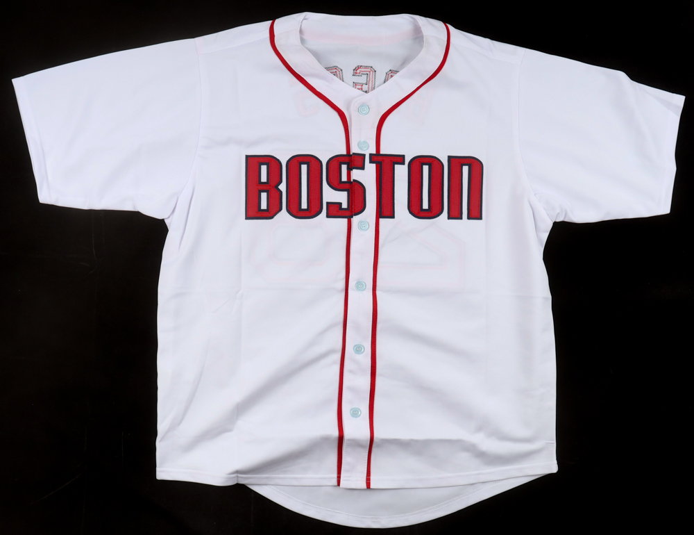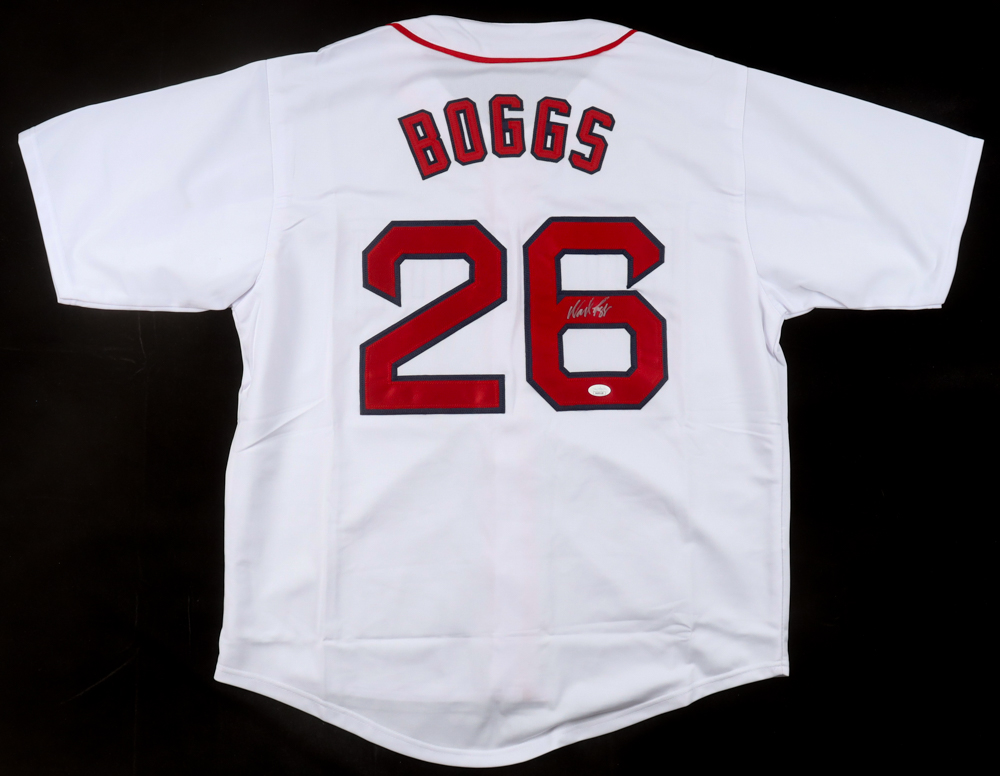 Custom jersey with everything sewn on, size XL. Hand-signed by Wade Boggs (HOF).