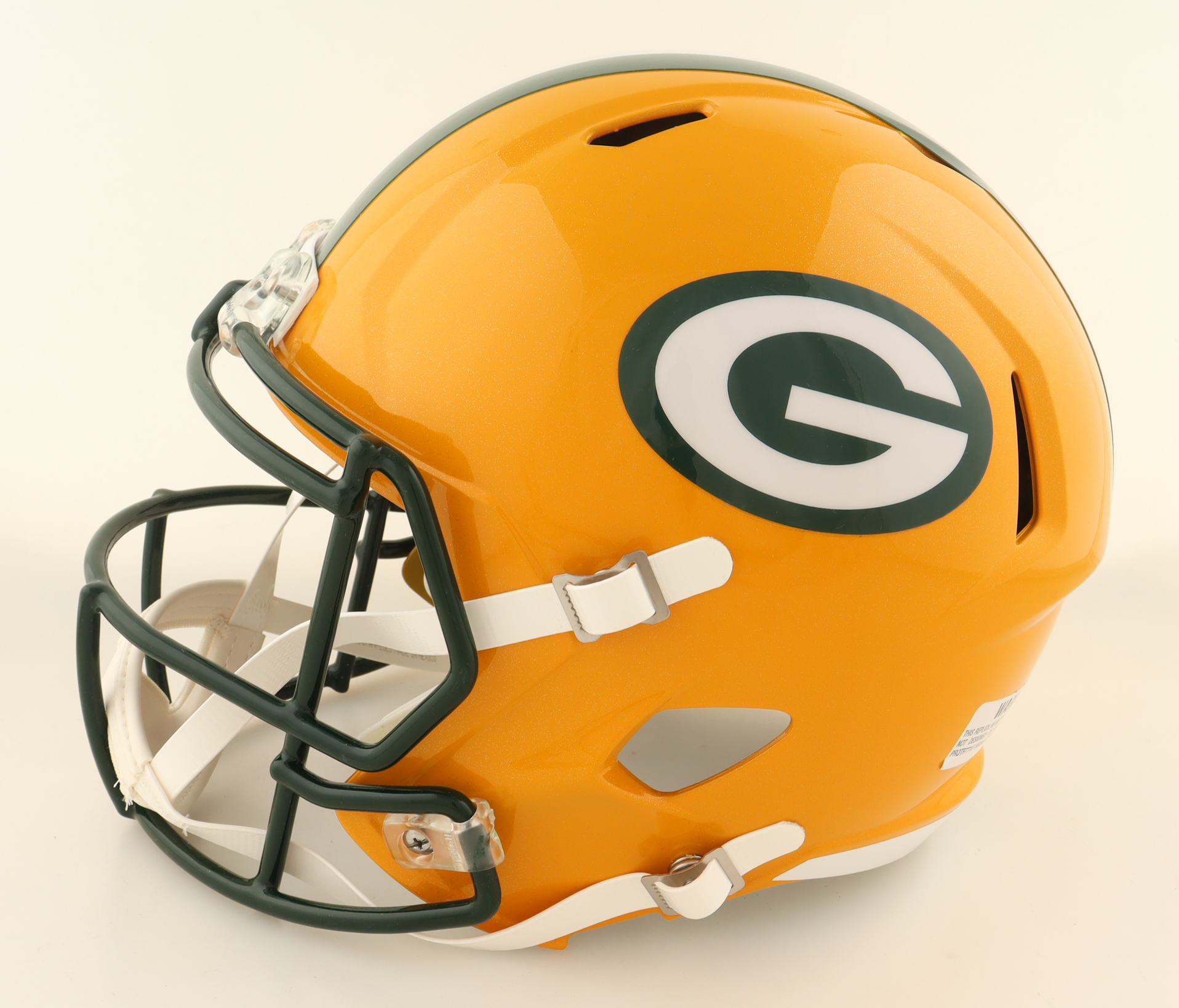 Riddell Green Bay Packers full-size replica Speed helmet. Hand-signed by Jordan Love.