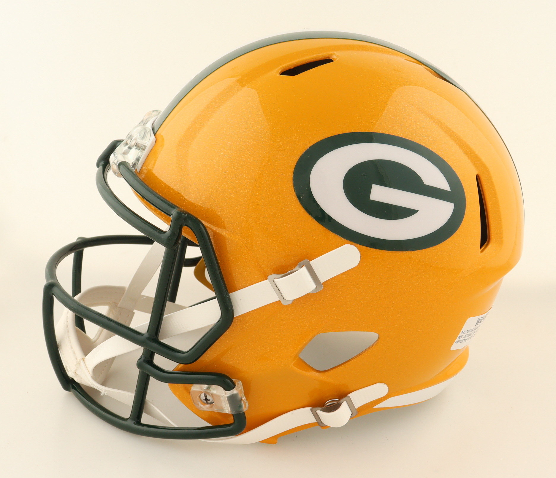 Riddell Green Bay Packers full-size replica Speed helmet. Hand-signed by Jordan Love.