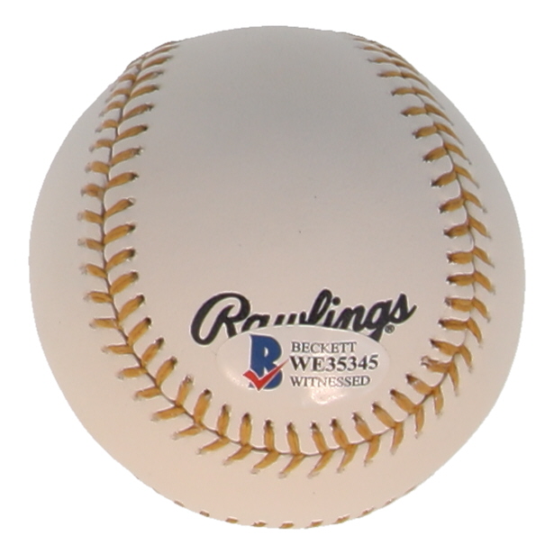 The autograph includes an official Beckett Authentication Services serially-numbered hologram and matching COA for authenticity purposes. The signing of this item was witnessed by Beckett.