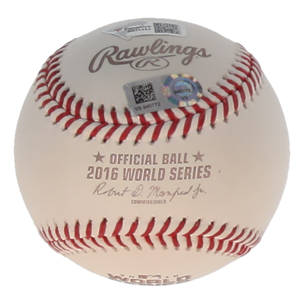 Rawlings Official 2016 World Series Baseball. Hand-signed and inscribed by Ben Zobrist (Chicago Cubs). Please note, there are minor stains throughout the baseball.