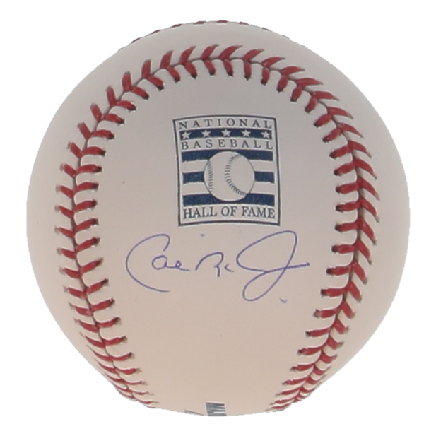 Rawlings Official Major League Hall of Fame Logo Baseball. Hand-signed by Cal Ripken Jr. (Baltimore Orioles, HOF). Please note, there are minor stains throughout the baseball.
