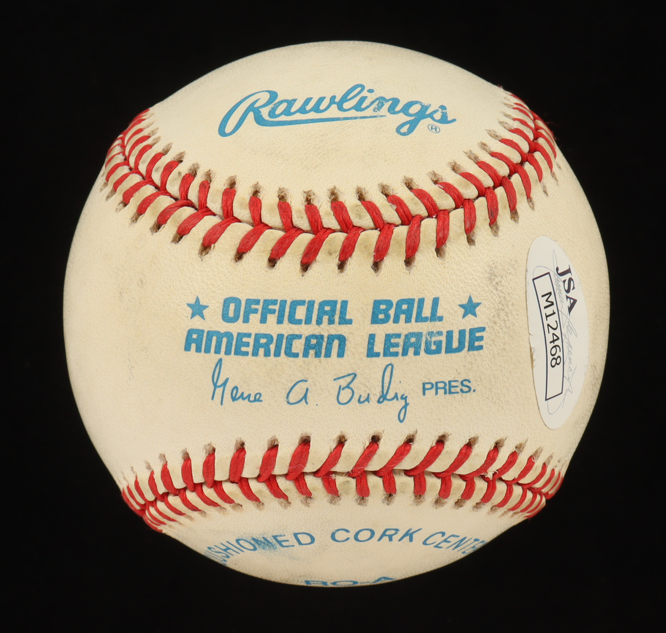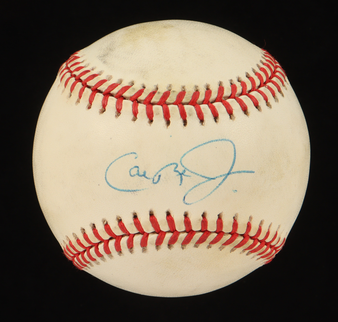 Rawlings Official American League Baseball. Hand-signed by Cal Ripken Jr. (Baltimore Orioles, HOF). Please note, ball is stained and naturally toned.