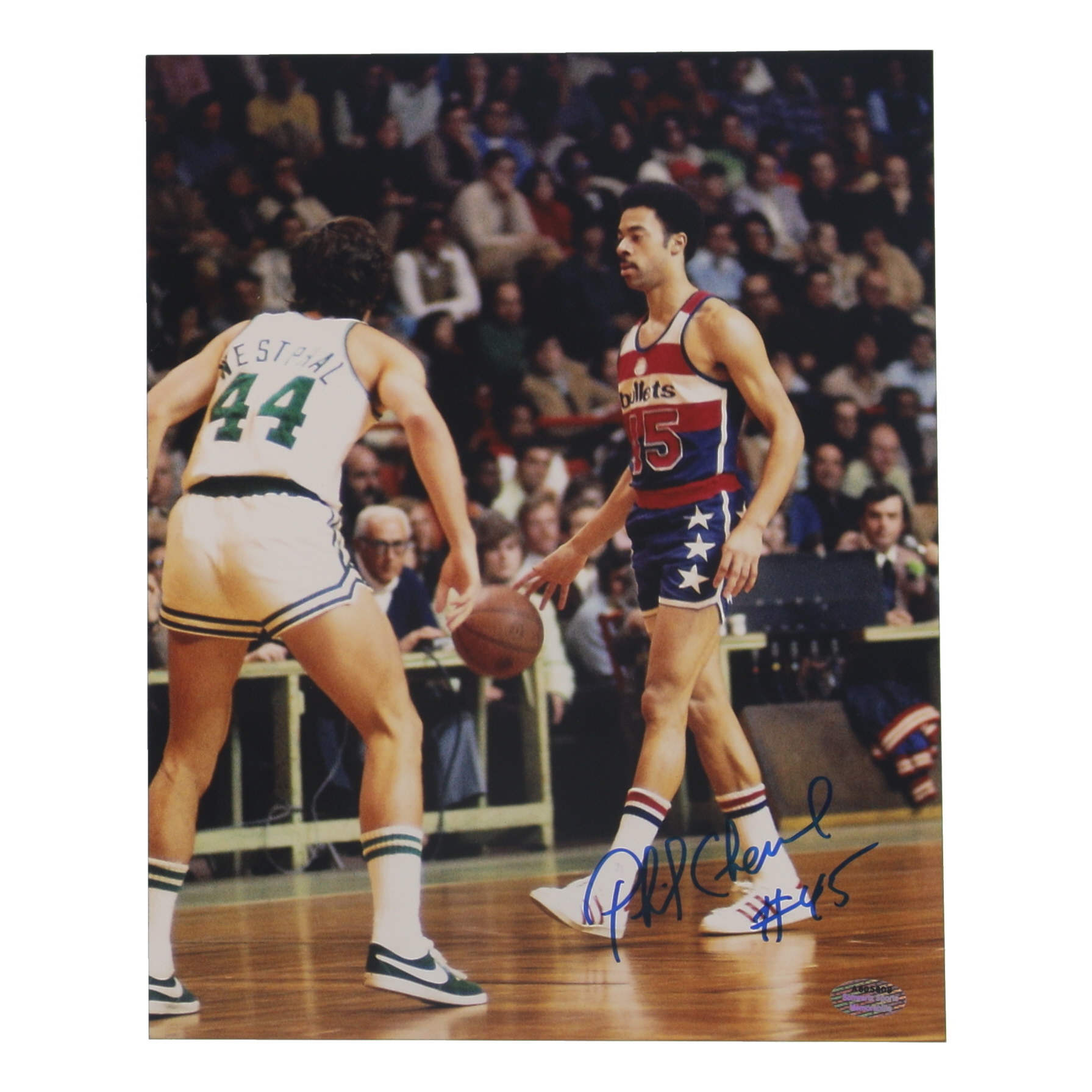 Photograph measures 8" x 10" in size and has been hand-signed by Phil Chenier (Washington Bullets).